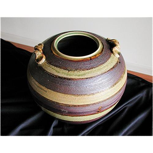 <table width="100%" border="0" cellspacing="0" cellpadding="4"><tr><td><em> JAPAN Exceptionally Large ! Signed Studio Pottery. Circa Pre 1910 ....</em></td></tr><tr> <td width="100%"> JAPAN * MEIJI PERIOD STUDIO POTTERY. HAND TURNED FIRED VASE. PORCELAIN INTERIOR Pre 1910 Very Heavy Textured Glazed Exterior in Multi-Colored Alternating Light To Dark Earth Tones. Subtle Yellow Golds to Dark Red Browns. Striking ! Finished Twist Handles at The Top which are Quite Unique. Interior Glazing Overlap to Exterior Edge an Attractive Dark Jade Green Color. SIGNED IN THE BASE. This Piece is Quite EXCEPTIONAL From All Angles of View. Large 11 x 11.5 Extremely Rare to find such Japanese Artisan Studio Pottery on This Scale * Secure Insured Express Delivery. VIRTUALLY PRISTINE ! Photographed in Natural Light. </td></tr><tr> <td> </td></tr><tr> <td>Reference #: 011_TSP</td></tr><tr><td>Condition:EXCELLENT</td></tr><tr><td>Year:CIRCA 1900's</td></tr><tr><td>Country:Japan</td></tr><tr><td>Height:11.5</td></tr><tr><td>Width:11.</td></tr><tr><td>Title:JAPAN * ARTISAN STUDIO. Meiji Period</td></tr><tr><td>Style:Meji Pre 1910</td></tr><tr><td>Materials:Stoneware & Porcelain Glazed</td></tr><tr><td>Type:Hand Turned. Color Glazed</td></tr><tr><td>Location:Bloomfield Hills, Michigan</td></tr></table>