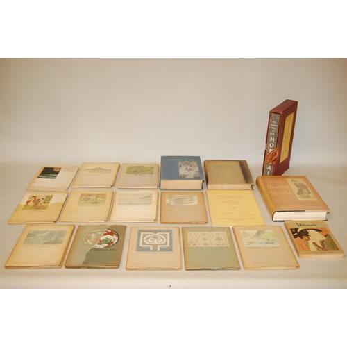 JAPANESE ARTS & LIFE. A Group of 18 Volumes as LIsted. Hard & Soft Covers. Good Condition. NOT EX-LIBRARY. ***One Hundred Views of Fuji by Hokusai , Fugaku Hiyaki-Kei (1958) 1st Edition, NY: Frederick Publications. Description of plates in English, by F.W. Dickens. Plates in b/w, Japanese style accordian folded pages, hard cover, bound by single silk rope, in a slipcase with paper label. ***12 Volumes from the Tourist Library Series, most with glassine, includes Japanese Family Crests, Angling in Japan, Tea Cult of Japan, Ainu Life and Legend & more. ***The Floating World by James A. Michener (1954) 1st Edition, NY: Random House. With DJ protected in glassine cover, color & b/w plates, binding & hinges tight. ***Arts and Crafts of Old Japan by Stewart Dick (1914) London: T.N. Foulis. Bound in buckram with gilt illustration. Smoke darkening to covers. ***Chats on Japanese Prints by Arthur Davison Ficke (1917) London: T. Fisher Unwin, Ltd. Color frontis, b/w plates, bound in cloth with illustrated paper label on cover. ***Japanese Color Prints, Roll Paintings and Books, sold by the Pratt Institute. Illustrated catalog on glossy paper. ***Kitagawa Utamaro (1753-1806), text by Ichitaro Kondo (1953) Rutland: Charles E.Tuttle Co.