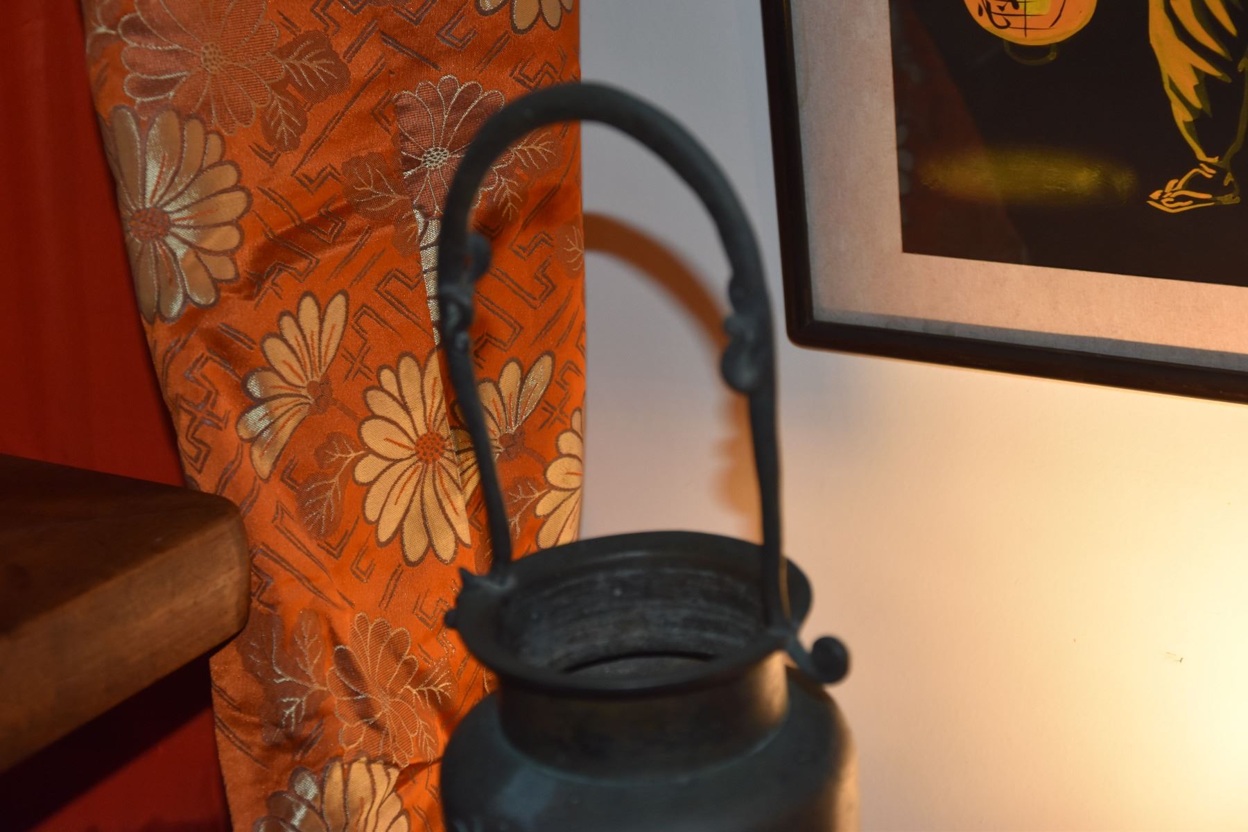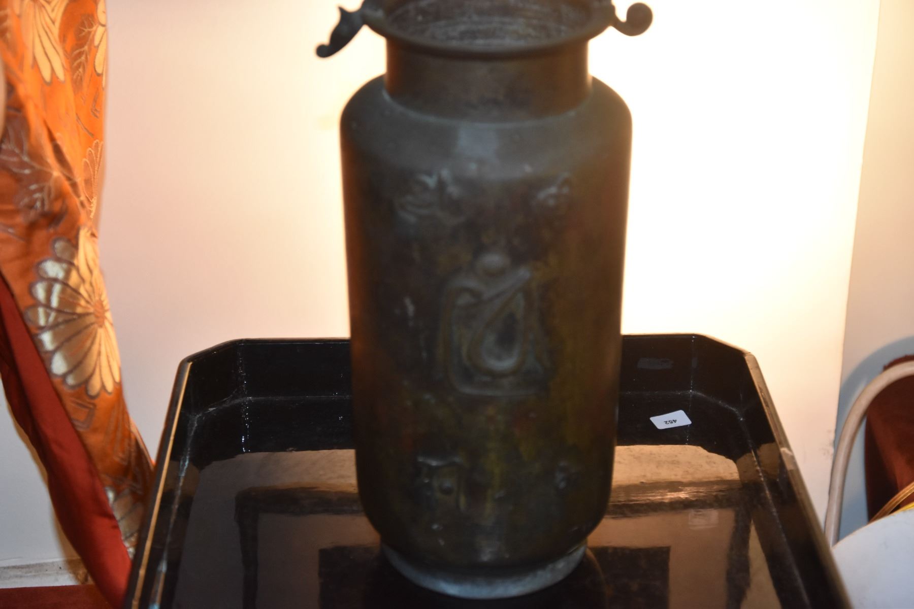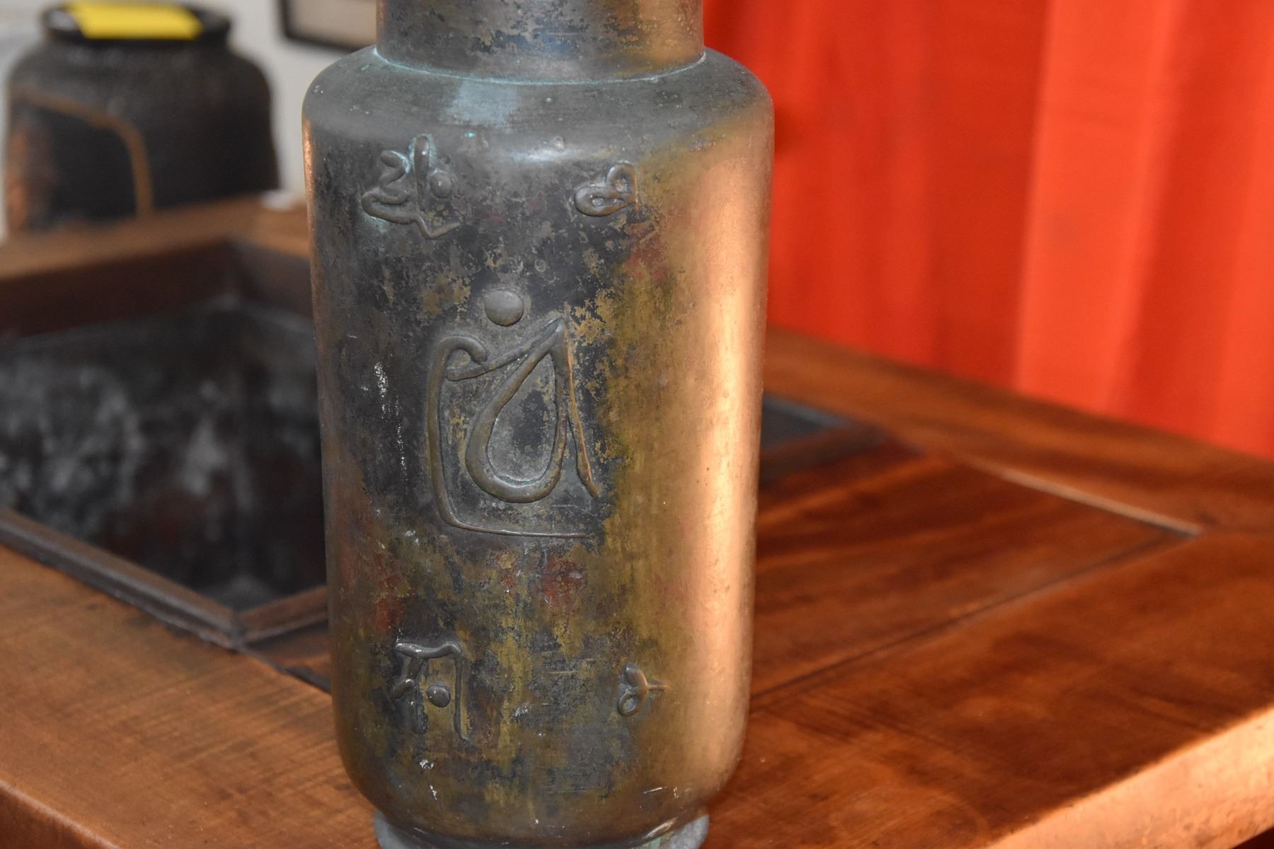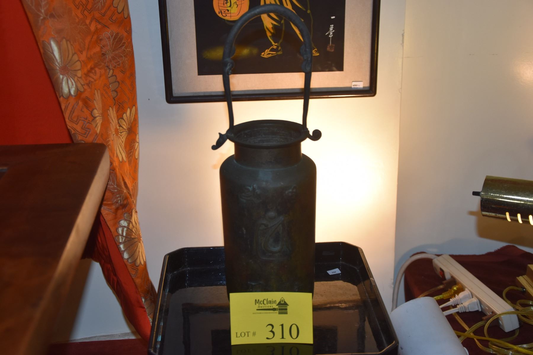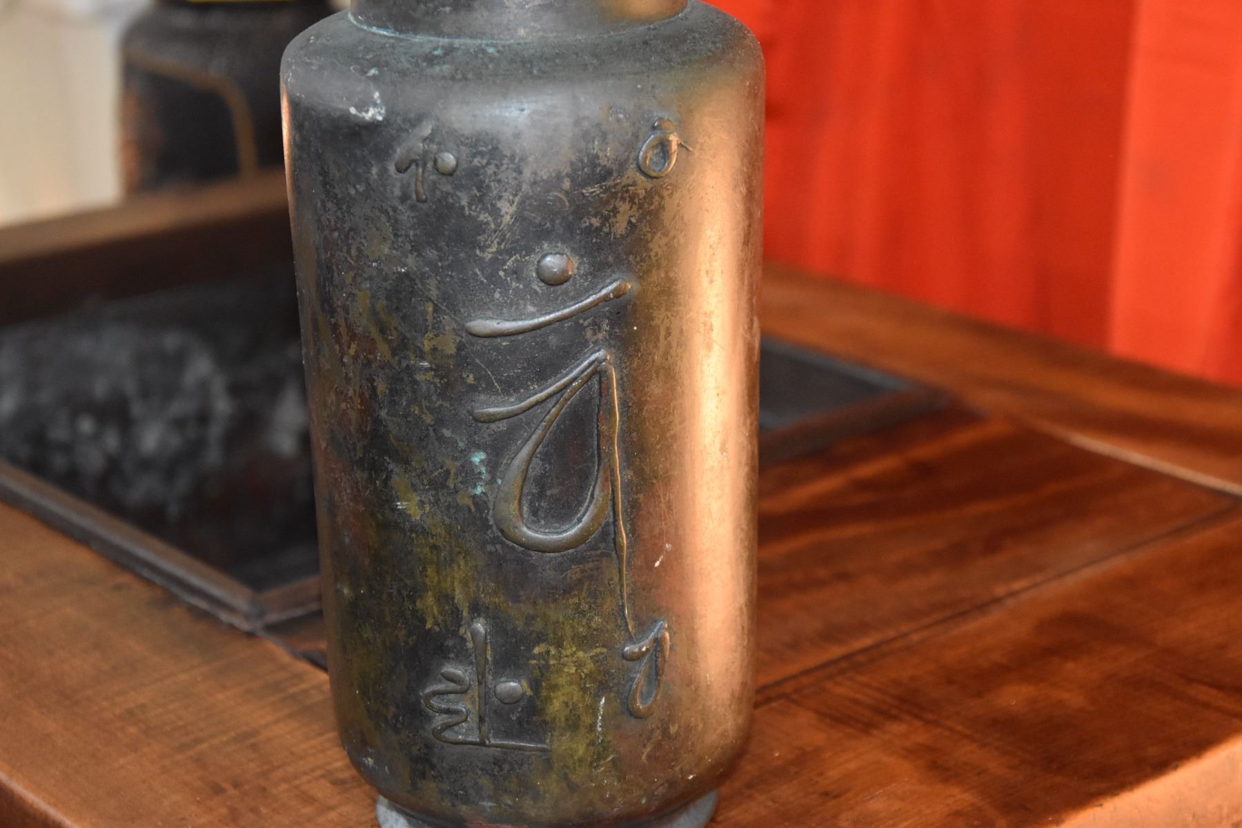 JAPANESE BRONZE VASE W/HANDLE & RELIEF CHARACTER DESIGN, EDO PERIOD (1603-1868