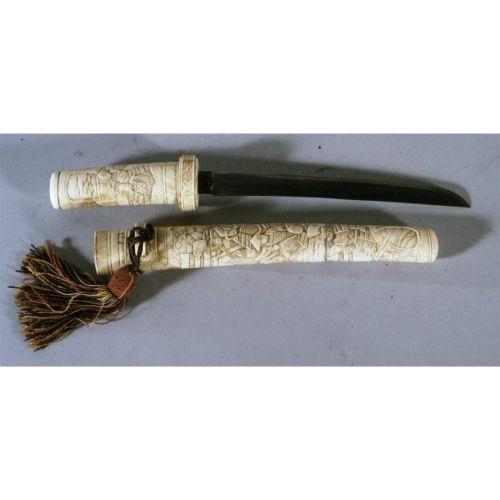 JAPANESE CARVED BONE TANTO (Samori Sword),