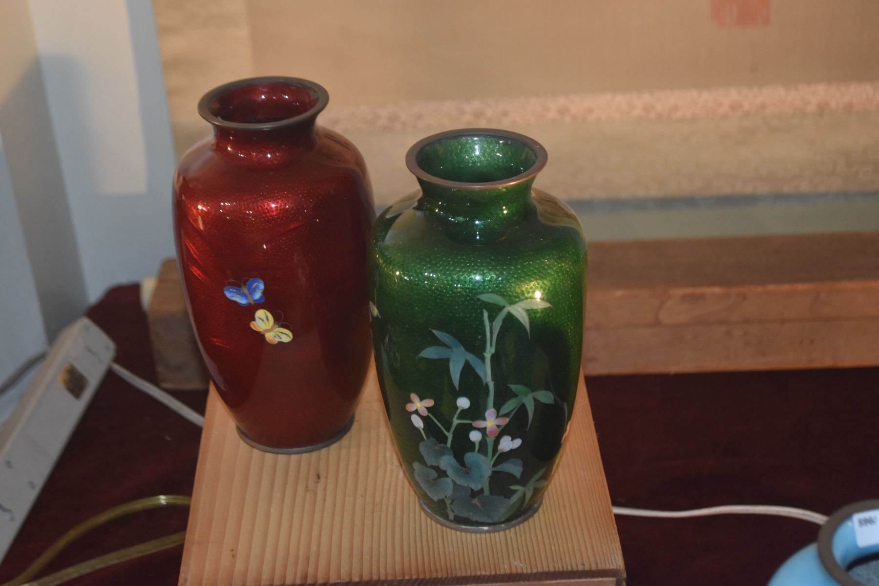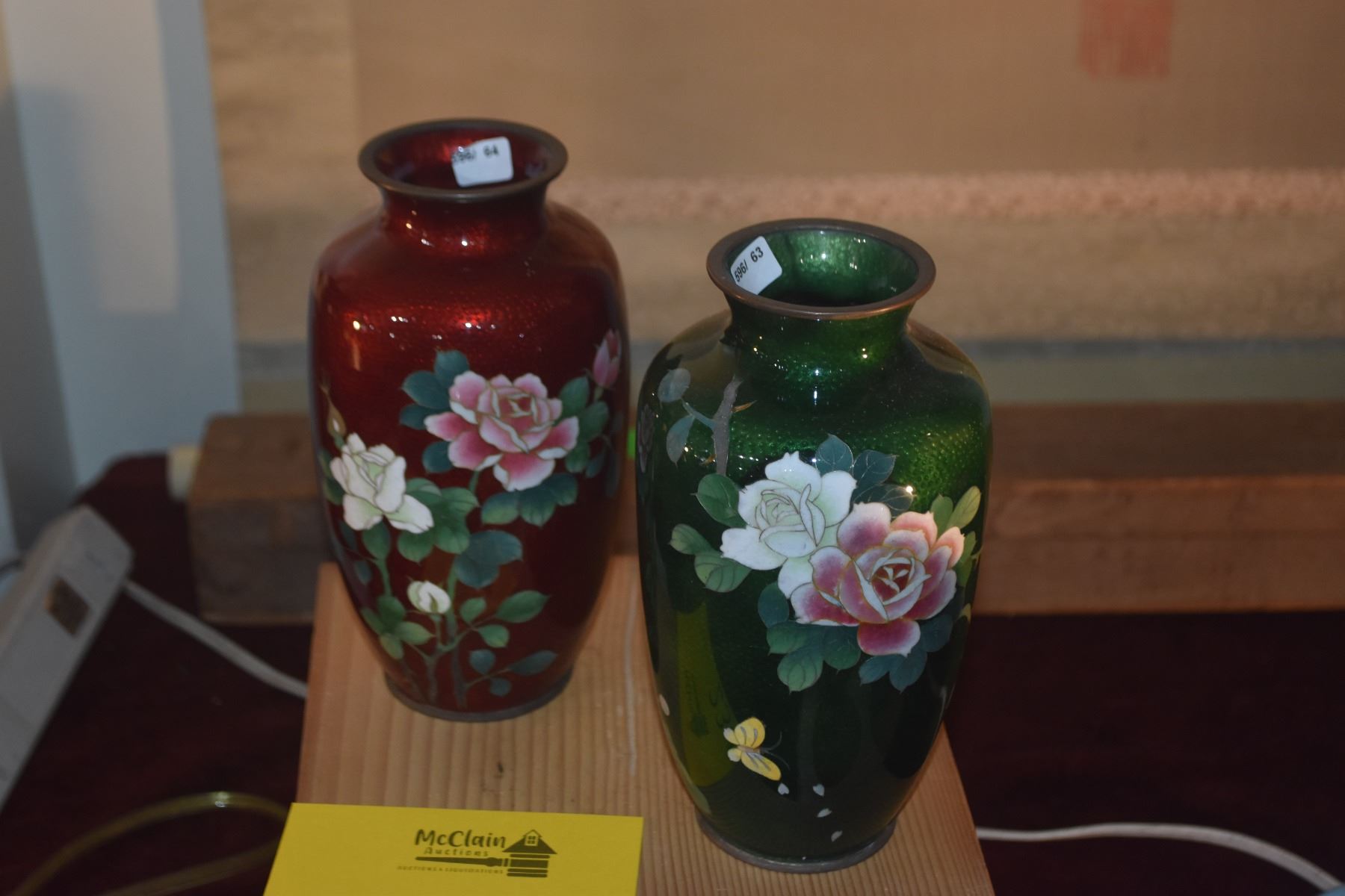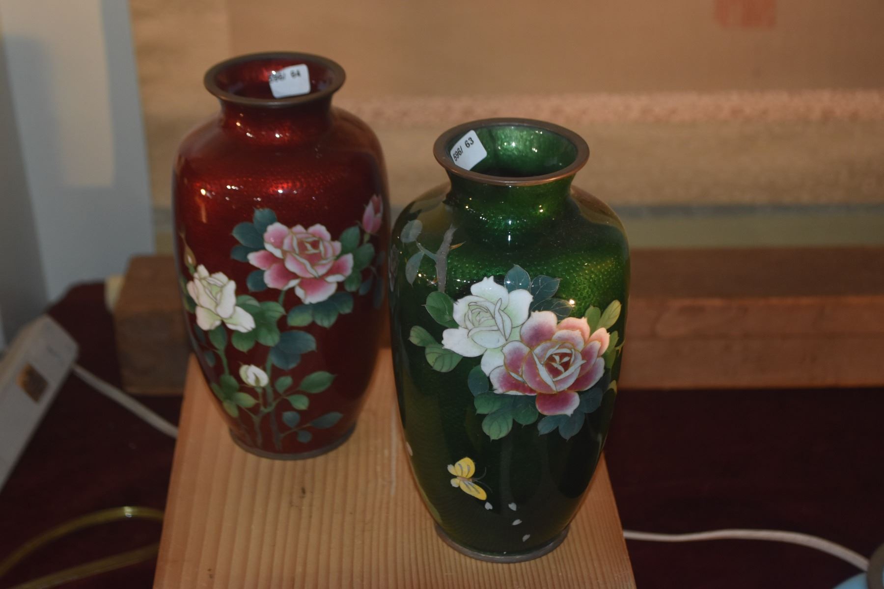 JAPANESE CLOISONNE VASES (ROSE DESIGNS) (2 PCS)