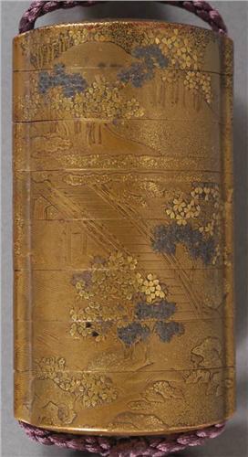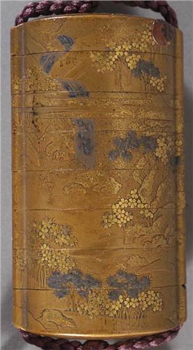 JAPANESE GOLD LACQUERWARE INRO with six cases 3 1/2" long, condition: excellent. packing and shipping w/in continental USA (excluding insurance) $20