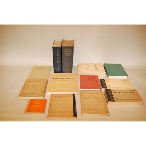 JAPANESE GRAMMER. A Group of 13 Volumes as Listed. Hard & Soft Covers. Good Condition. NOT EX-LIBRARY, occasional foxing, all have stamp issuing book to an Officer in the Naval Service. ***Manual of Chinese-Manchurian Personal and Place Names (1943), hard cover, binding & hinges tight. ***A Simplified Grammer of the Japanese Language (Modern Written Style) by Basil Hall Chamberlain (1943) Chicago: University of Chicago Press. Hard cover, binding & hinges tight. ***3000 Chinese-Japanese Characters in Their Written Forms by Arthur Rose-Innes (nd) U.S. Government Printing Office. Soft cover, binding & hinges tight. ***Fuzambo's Comprehensive English-Japanese Dictionary (1942) Cambridge, MA: Harvard University Press. Hard cover, 1855pp, binding & hinges tight. ***Japanese Phrase Book February 28, 1944 - Restricted, Washington: War Department. Soft cover, binding & hinges tight. ***Spoken Japanese, Basic Course, Units 1-30, 2 Volumes, by Bernard Bloch & Eleanor Harz Jorden (1945) Published for the U.S. Armed Forces by the Linguistic Society of America. Soft cover, oblong format, binding & hinges tight. ***List of 500 Kanji Which Appear in Book I Naganuma Readers, Calligraphy by Ensho Ashikaga (1943) University of Calif. Press. Soft cover, pencil markings. ***Kaigun Tokuhon (The Navy Reader), Calligraphy by Ensho Ashikaga (1944) University of Calif. Press. Soft cover, with folding plate of battleship, and other b/w plates, binding & hinges tight, pencil notations. ***Gyo-So Tokuhon - A Reader Written in Gyosho and Sosho, Calligraphy by Ensho Ashikaga (1944) University of Calif. Press. Soft Cover with pencil notations. ***Japanese Basic Characters by Onishi Masao (1944) U.S. Government Printing Office. Soft Cover, binding & hinges tight. *** 2 others in Japanese, one reproduced by Bureau of Engraving, Inc. in Minneapolis.