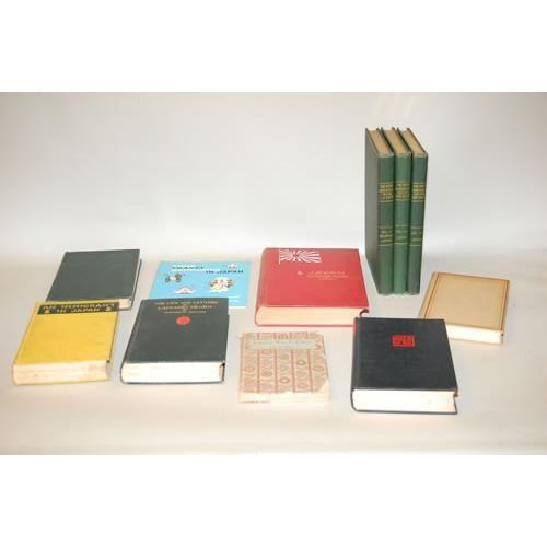 JAPANESE LIFE AND TRAVEL. A Group of 11 Volumes as Listed. Good Condition. NOT EX-LIBRARY. ***Father and I - Memories of Lafcadio Hearn by Kazuo Koizumi (1935) Boston: Houghton Mifflin. 8vo in cloth binding, lacks jacket, binding & hinges tight. ***An Immigrant in Japan by Theodate Geoffrey (1926) Boston: Houghton Mifflin. 8vo in cloth, no jacket, binding & hinges tight. ***Japanese Here and There by Margaret E. Forsyth (1934) NY: Friendship Press. 12mo soft cover, corner chip to cover. ***Japan the Place and the People by G. Waldo Browne (1904) Boston: Dana Estes & Co. 4to in cloth, frontis with illustrations, binding & hinges tight. ***The New America and The Far East by G. Waldo Browne, Volumes 2, 3 & 4, (1907-1913) Boston: Marshall Jones Co. 4to in cloth, frontis with tg in each volume, illustrated throughout, binding & hinges tight. ***Your Travel Companion in Japan (circa 1959) Japan Travel Bureau. 8vo, soft cover, with maps of Tokyo and Kyoto, a conversion card and postcard bound in. ***The Life and Letters of Lafcadio Hearn, vol. 1, by Elizabeth Bisland (1906) 1st, Boston: Houghton Mifflin. 8vo, photographic frontis with tg, illustrated, binding & hinges tight, ex-lib. ***The Importance of Living by Lin Yutang (1937) NY: Reynal & Hitchcock. 8vo in cloth, no dust jacket, binding & hinges tight. ***John L. Stoddard's Lectures, Japan (1909) Boston: Balch Brothers Co. 8vo in cloth, frontis with illustrations throughout, binding & hinges tight.