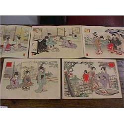 JAPANESE MEIJI PERIOD WATERCOLOURS IN LINEN BOUND BOOK FORM - YOUNG WOMEN LEARNING ETIQUETTE. 11 STUDIES 8 x 7 + 2 OTHERS 1 A.F.