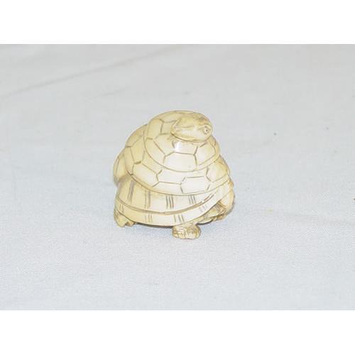 JAPANESE NETSUKE CARVED IVORY FIGURE OF TURTLE W/ COILED SNAKE ON HIS BACK-UNMARKED (LATE 19TH-EARLY 20TH CENT.; 1 1/4" T) - MINOR WEAR