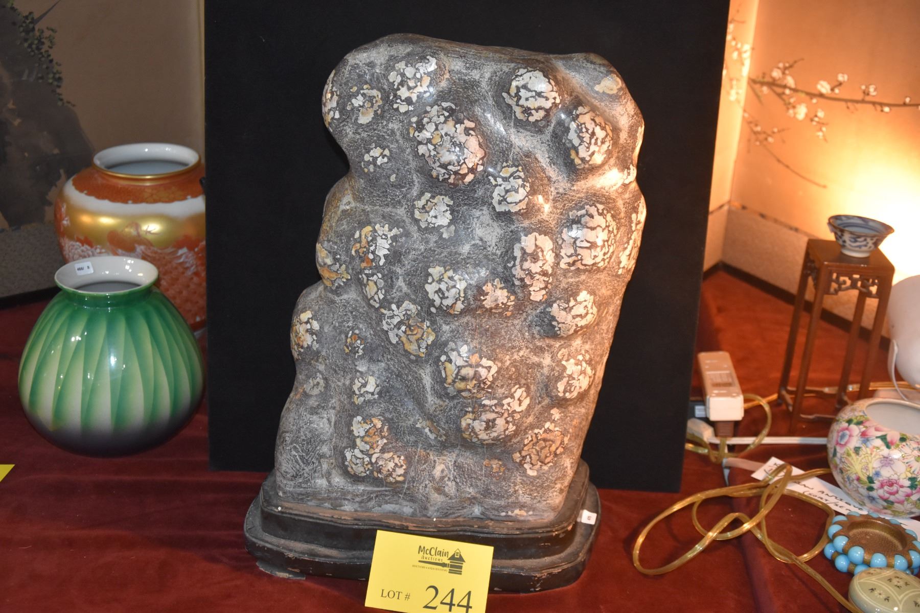 JAPANESE SUISEKI FLOWER STONE SCHOLAR ROCK ON STAND (20" X 11")