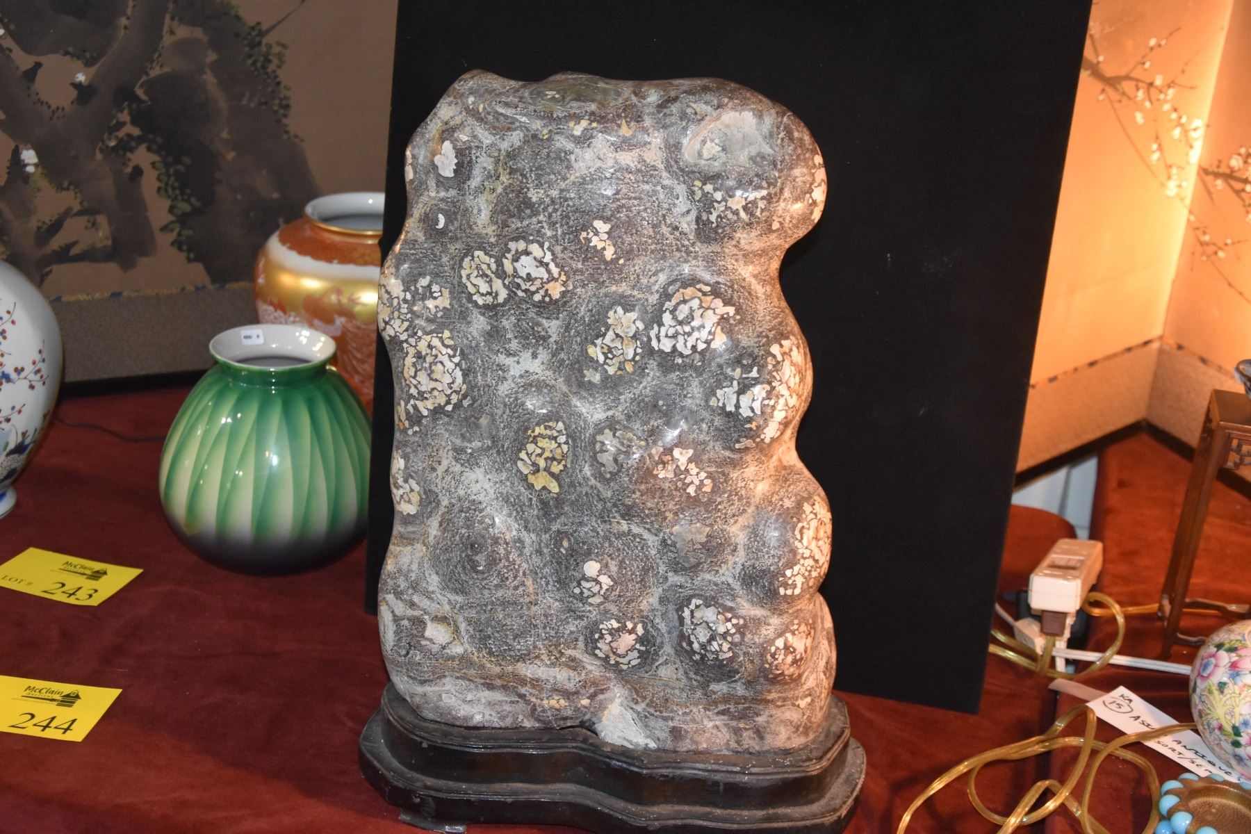 JAPANESE SUISEKI FLOWER STONE SCHOLAR ROCK ON STAND (20  X 11 )