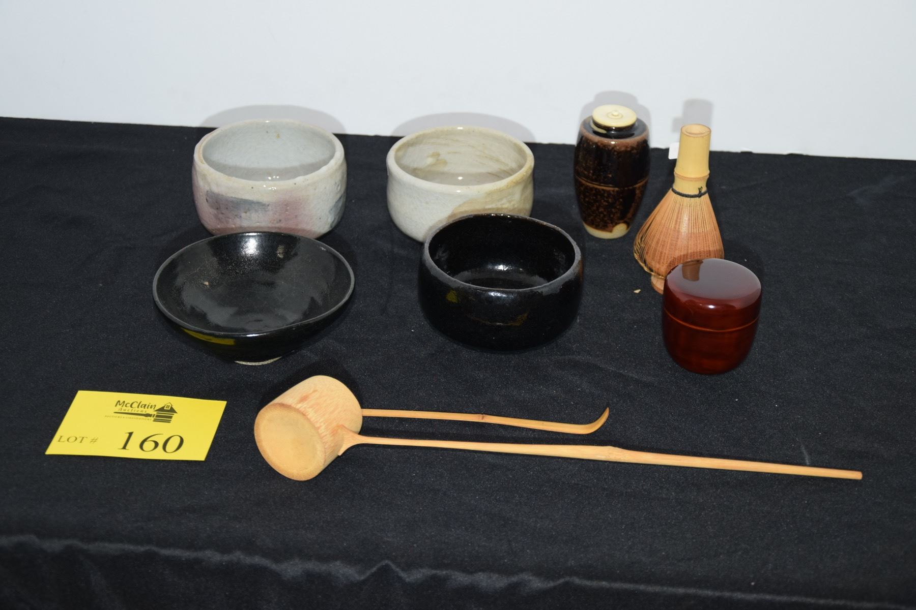 JAPANESE TEA BOWLS, TEA CADDY & ACCESSORIES