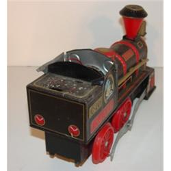 JAPANESE BATTERY-OPERATED 'CANNONBALL' TOY LOCOMOTIVE. Marked on sides "C.S. & N.R.R.-C-20". Marked on bottom "Made in Japan". Missing small piece on top.