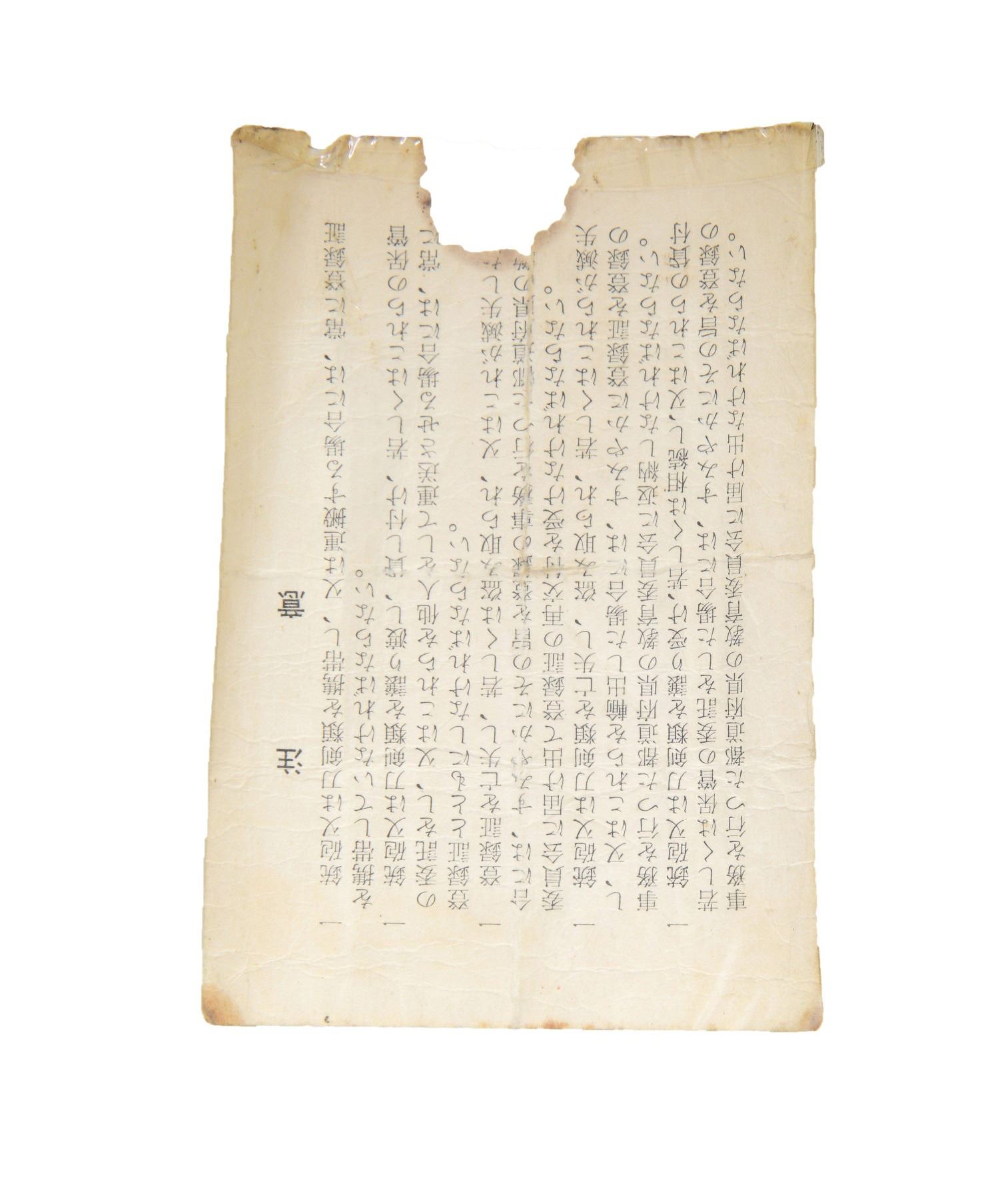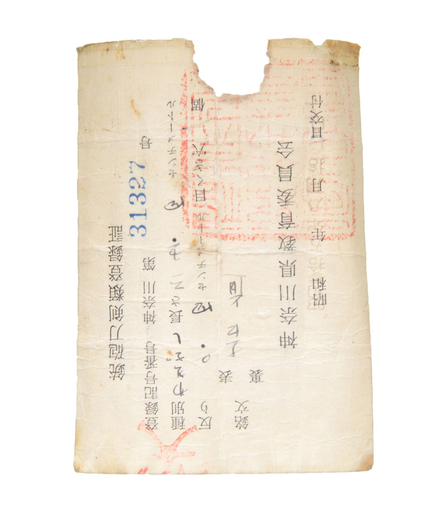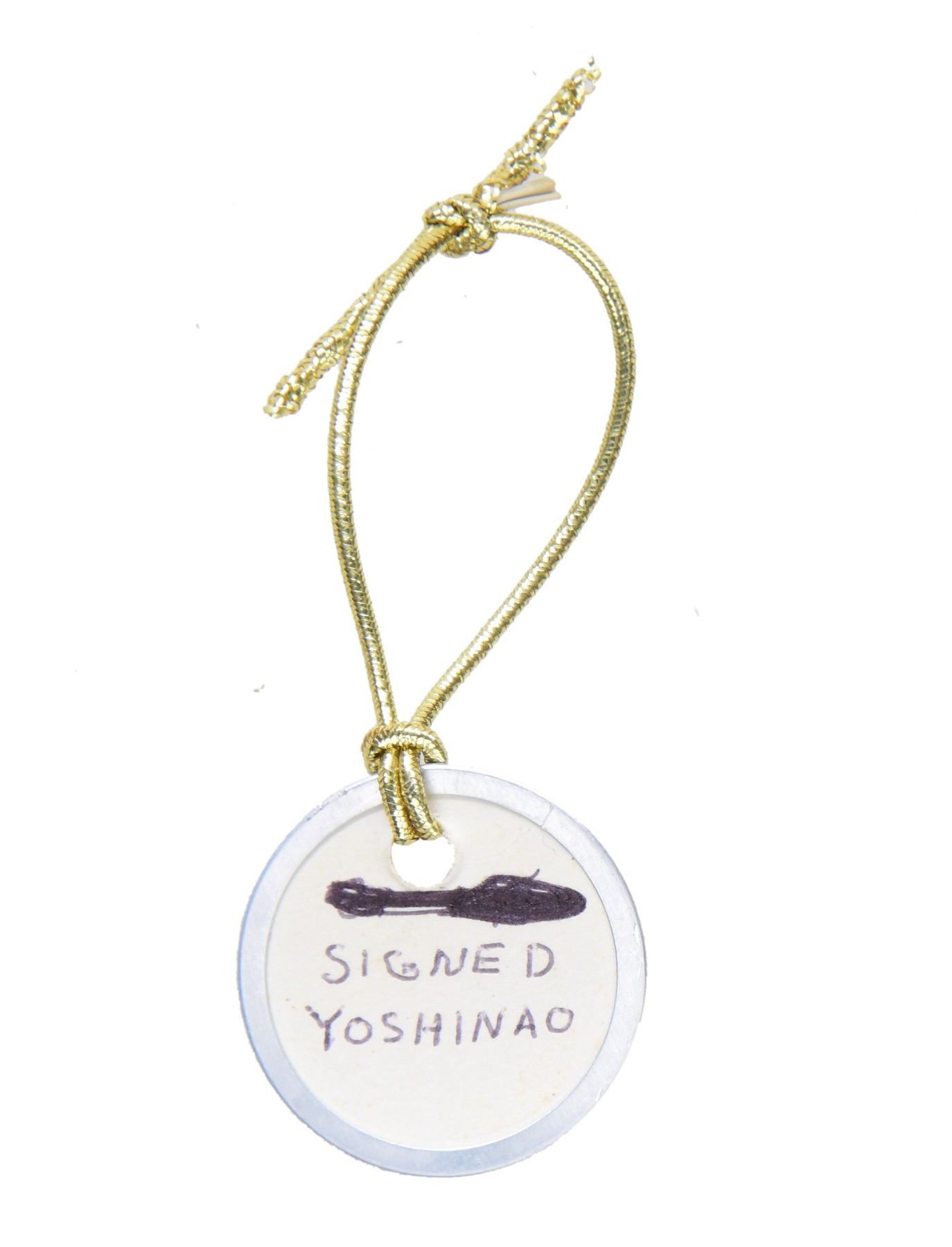 This wakizashi measures 20 7/8" overall while mounted in the shirasaya. The blade itself measures 14 1/2" with a slightly irregular hamon. Copper habaki with a nakago that has a single mekugi-ana and two-character signature. As stated, the blade is mounted in a shirasaya. UNATTACHED ACCESSORIES: there is a tag that comes with the sword that was originally attached with a plethora of Japanese characters and a serial number. There is also a small collector tag that reads "SIGNED YOSHINAO". CONDITION: blade has a very good polish but does show a few forging flaws that do not detract from the stability of the blade. The shirasaya shows storage wear only. (02-23629/BF). NON-GUN. $300-500.