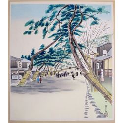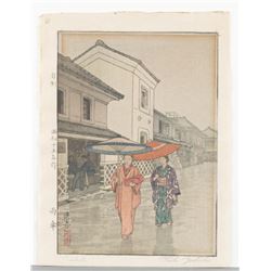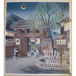 A Japanese woodblock prints. Yoshida, Toshi (Japan, 1911-1995). Chuuban, approx. 10 x 7. Shinjuku. 1938. FINE CONDITION