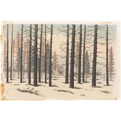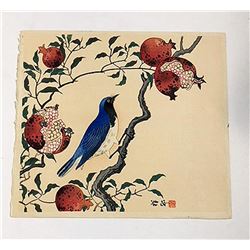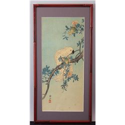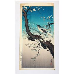 Tsuchiya Koitsu- Plum Warbler. Circa: 1940's. Publisher: Doi Hangaten. Format: Mitsugiri, 18.2 x 35 Cm (approximately 15 x 8 inches). FINE CONDI...
