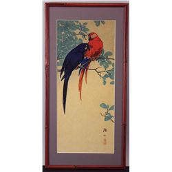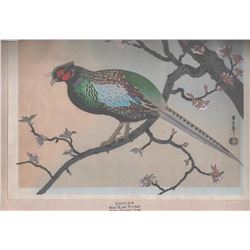 Japanese woodblock print. Tangu Benji Asada- Pheasant (matted), FINE CONDITION, Print measures 11.25 x 16.5. Matting is approximately 19 x 14