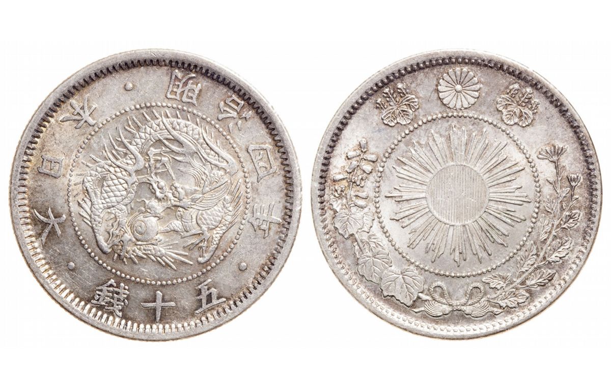 50 Sen 1871 (yr 4). 49.1. Type 1, 19mm, inner circle. AU-Unc. RARE.