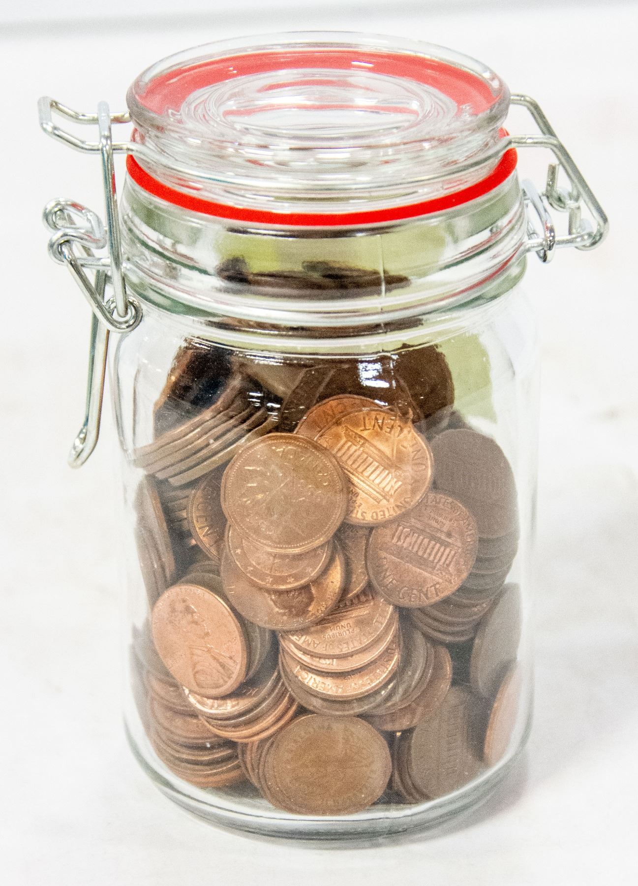 JAR FILLED WITH OLD CANADA AND USA PENNIES