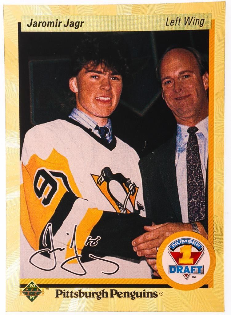 JAROMIR JAGR 1990-91 UPD # 356 PENGUINS ROOKIE Card - 23kt Gold Overlay,Plate Signature