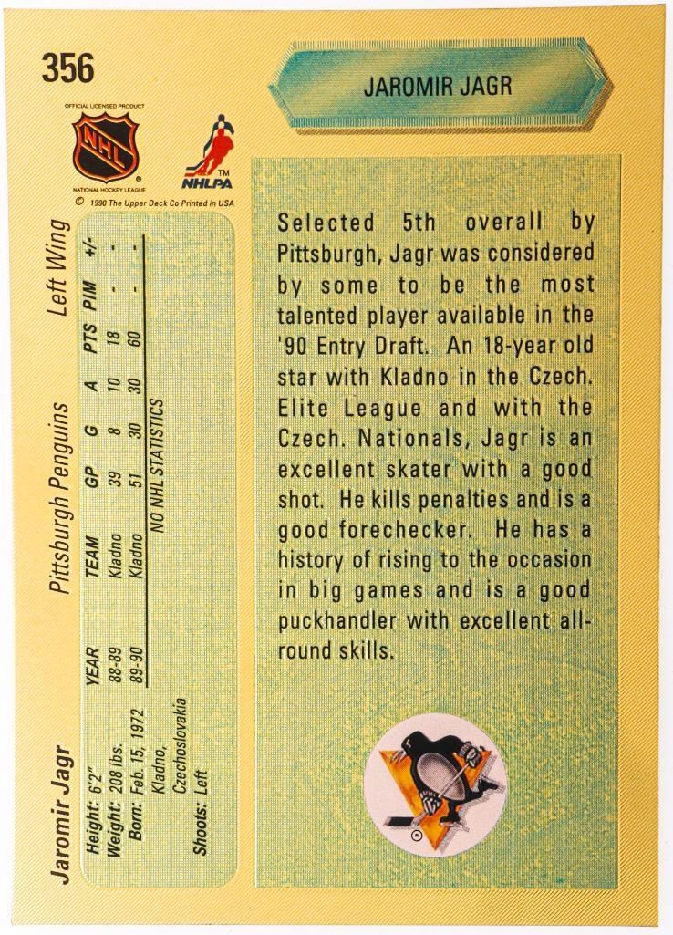 JAROMIR JAGR 1990-91 UPD # 356 PENGUINS ROOKIE Card - 23kt Gold Overlay,Plate Signature