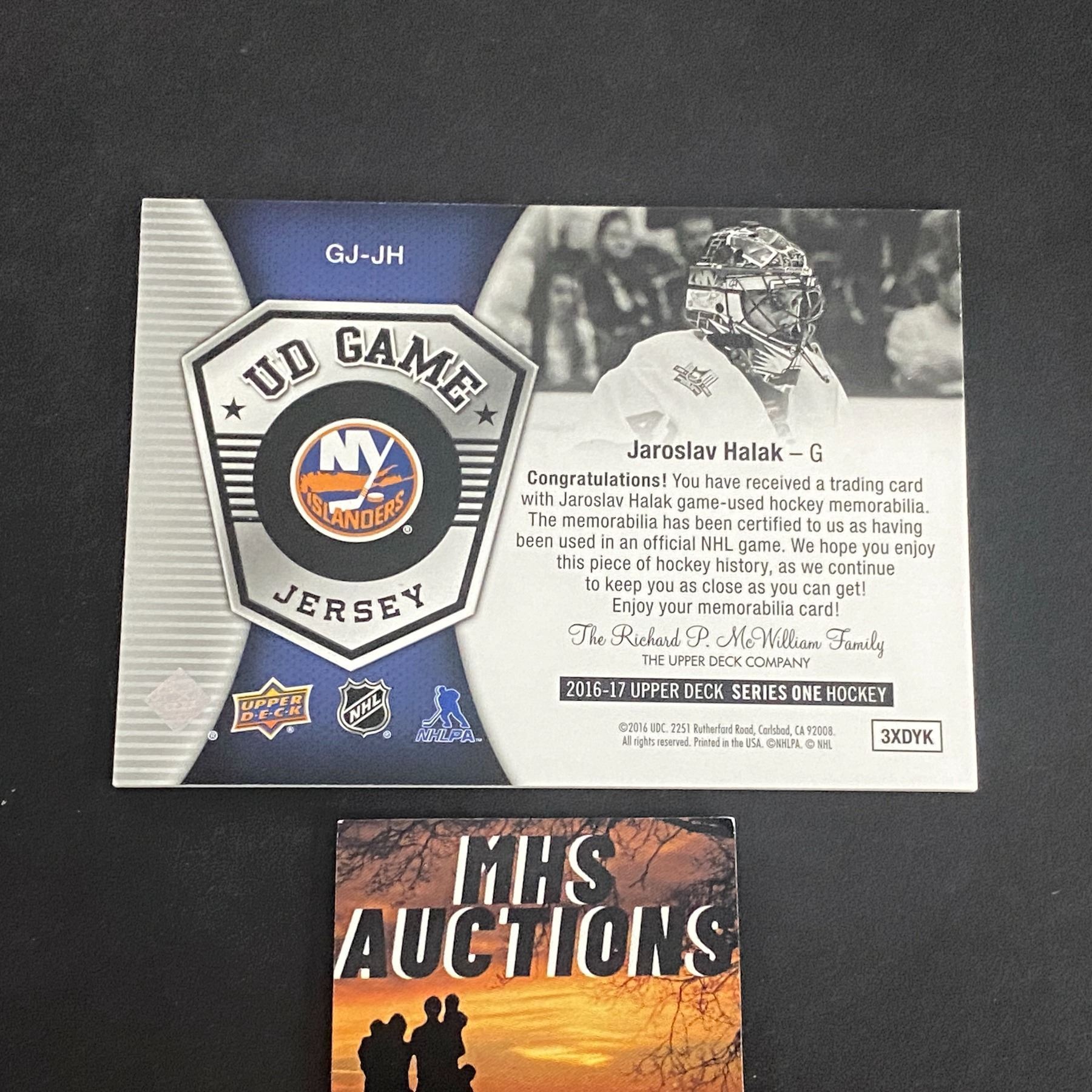 JAROSLAV HALAK JERSEY CARD 2016/17 U.D SERIES 1 HOCKEY