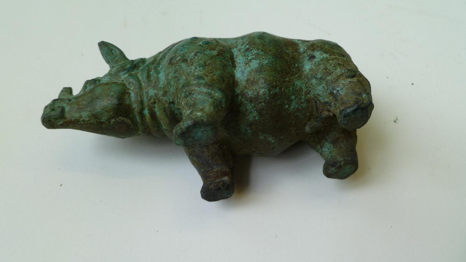 Solidly made, well-formed, he is the epitome of power. Original hard patina, 15-18th C., 4-3/8" long and 2-1/4" tall, his detail will please you. A chieftains power amulet.