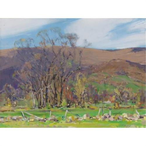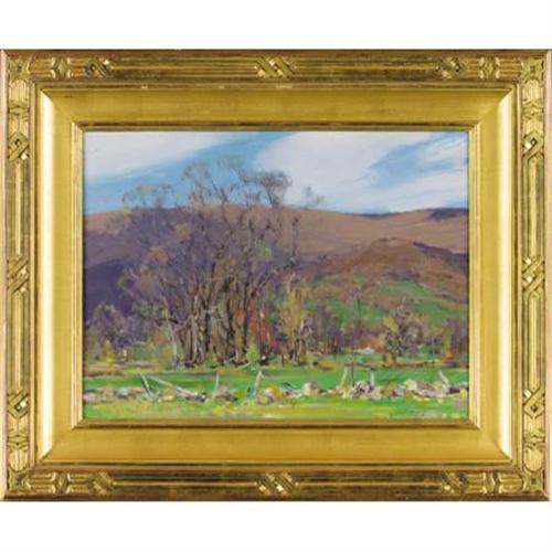 <B>JAY HALL CONNAWAY (American, 1893-1970)</B></I><BR><I>Early Spring, Sunderland</B></I><BR>Oil on board<BR>18 x 24 inches (45.7 x 61.0 cm)<BR>Signed lower right: <I>Connaway</B></I><BR>Signed and titled on verso: <I>"Early Spring / Sunderland"/ Jay H. Connaway N.A.</B></I> <B>Condition Report:</B> Very good condition, framed.<BR><BR><b>Shipping:</b> Requires 3rd Party Shipping (<a target="_blank" href="http://www.heritageauctions.com/common/shipping.php">view shipping information</a>)