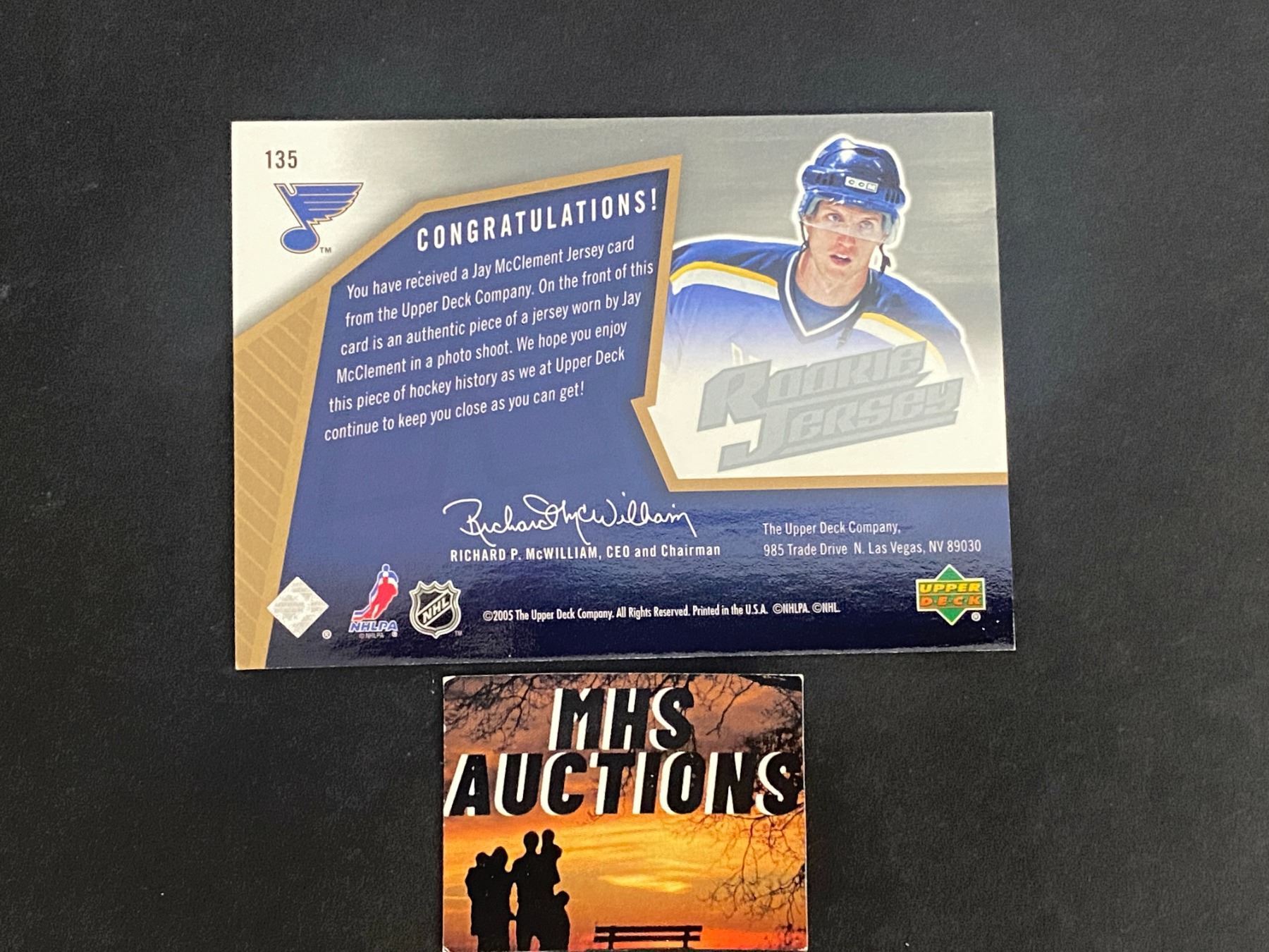 JAY MCCLEMENT 2005 SPX ROOKIE JERSEY HOCKEY CARD