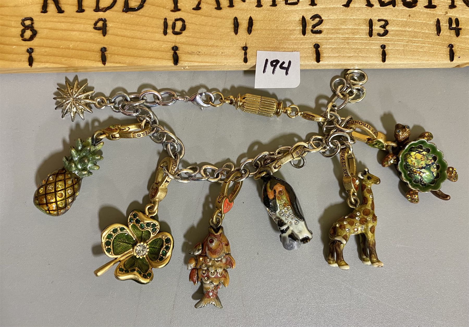 JAY STRONGWATER CHARMING BRACELET - INC: LUCKY CHARM, GIRAFFE, FISH, TURTLE, PINEAPPLE, PENGUINS CHARMS