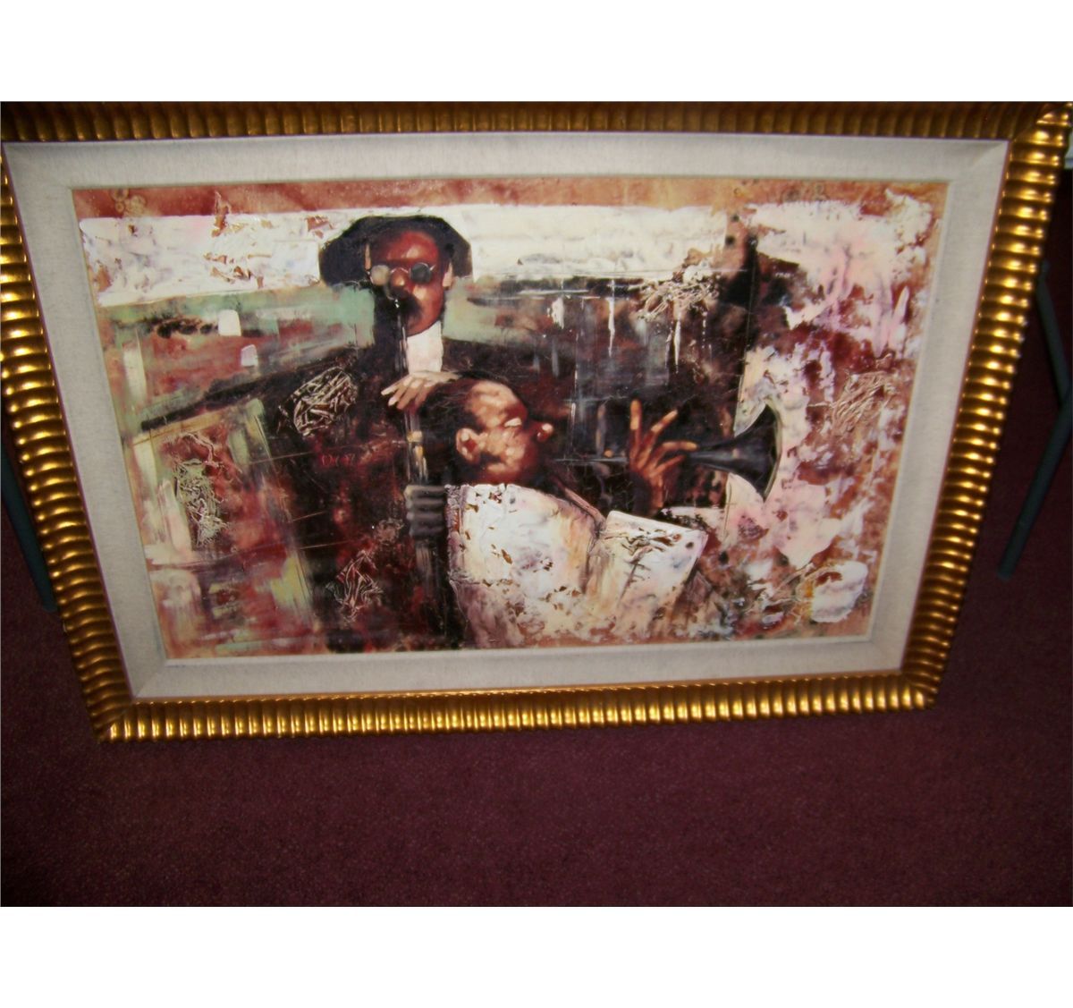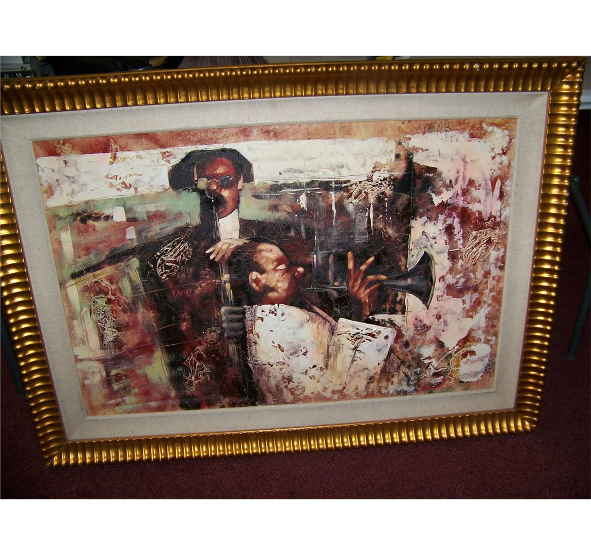 JAZZ  ORIGINAL MIXED MEDIA PAINTING ON BOARD, CUSTOM FRAMED