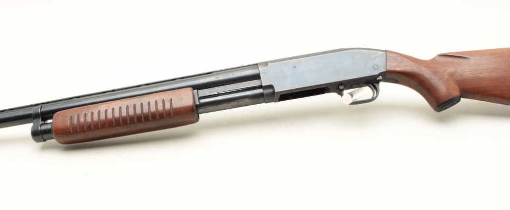 with JC Higgins patented compensator, 14" LOP, 46 1/4" overall. Shotgun is in very good plus condition with light surface scum and corrosion which should easily clean. Bore is bright, action is crisp. (C&R) Est. $125-250