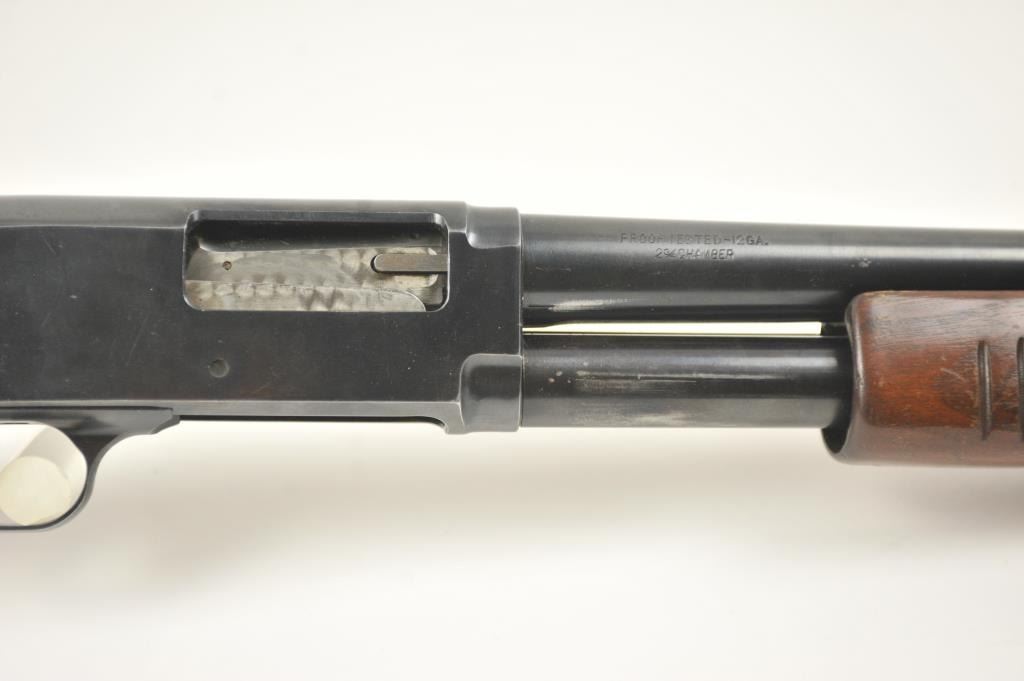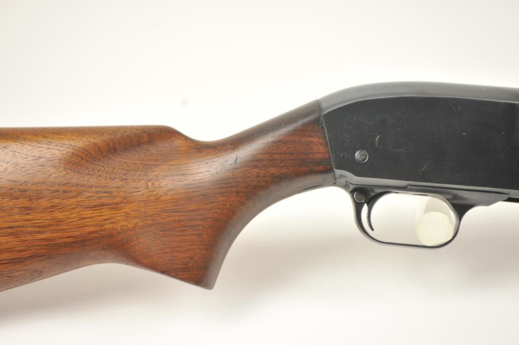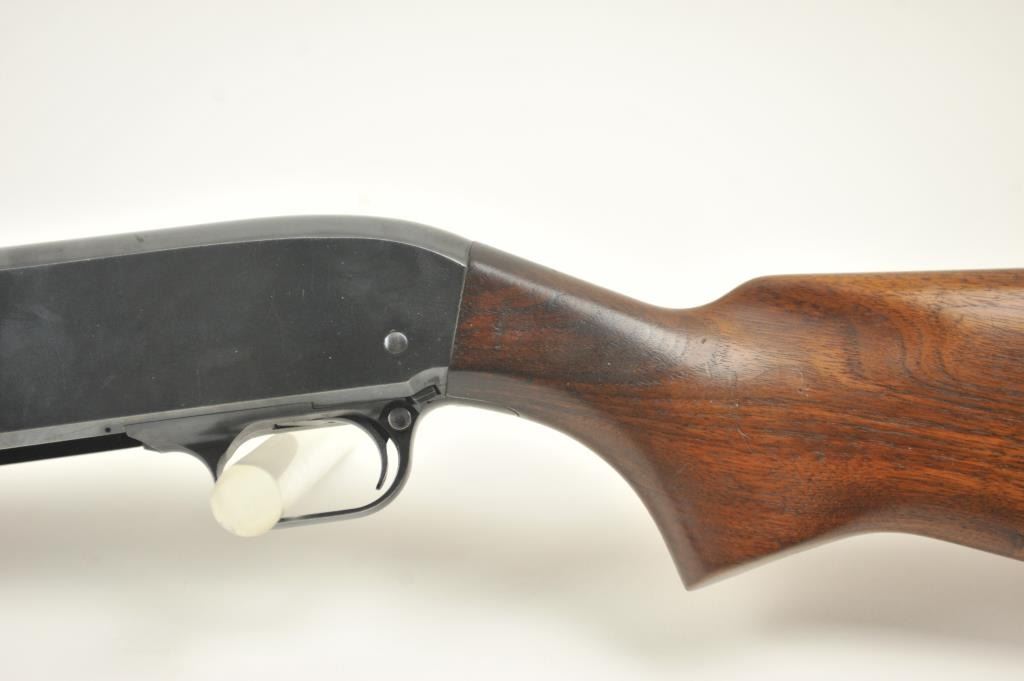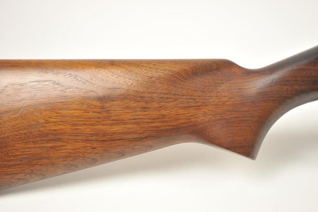 JC Higgins Model 20 pump shotgun, #NSNV, 12 Ga., chambered for 2 ¾” shells, choked cylinder, blued finish, bead front sight, plain wood stock with rubber recoil pad. The shotgun is in overall very good pluscondition, retaining approximately 93-95% original finish. The bore is very good, the action is good with the exception of a broken forehand operating tube, which can be welded. The bore is very good, the action is good. The stock is very good with minimal marks and scratches. (C&R/PPT) Est. 100-200