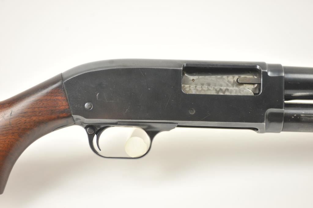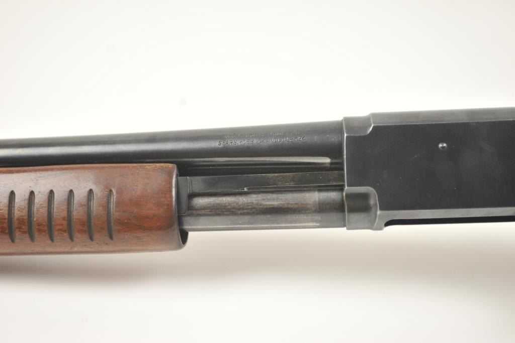 JC Higgins Model 20 pump shotgun, #NSNV, 12 Ga., chambered for 2 ¾” shells, choked cylinder, blued