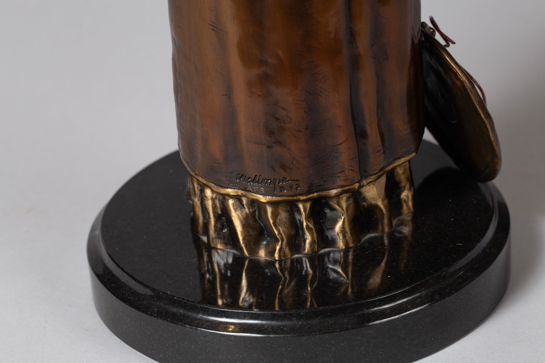 Beautiful 1990s "White Men Medicine" bronze sculpture signed by J.D. Challenger, Stamped "AP #3, copyright 1997"