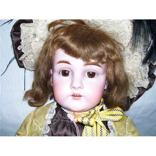 This doll is 29 inches tall . Has a bisque head , kids leather jointed body all her clothes and shoes . On the back of her head is marked DEP -154 AND 17 . I believe she is a JD Kesner Doll. She has sleep eyes , open mouth with teeth , painted eyebrows and she is so-so beautiful.