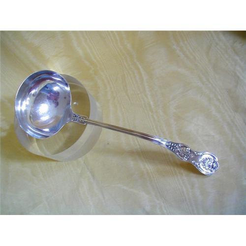 BURTON BROOK FARM ANTIQUES presents a fine sterling silver Dominick & Haff 11 1/2+" Soup Ladel in the elegant Kings Pattern & retailed by the famous Philadelphia Jeweler J.E. CALDWELL & Co. The deep bowl is 3 5/8" round. The ladel is heavy sterling with deep chased work. STAMPED: STERLING / JE CALDWELL & CO.