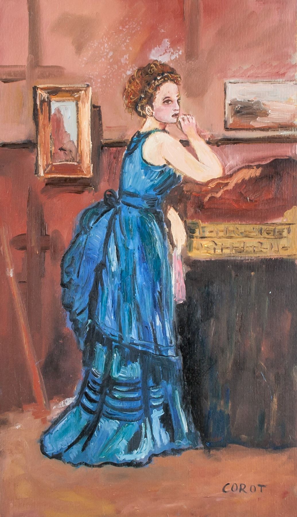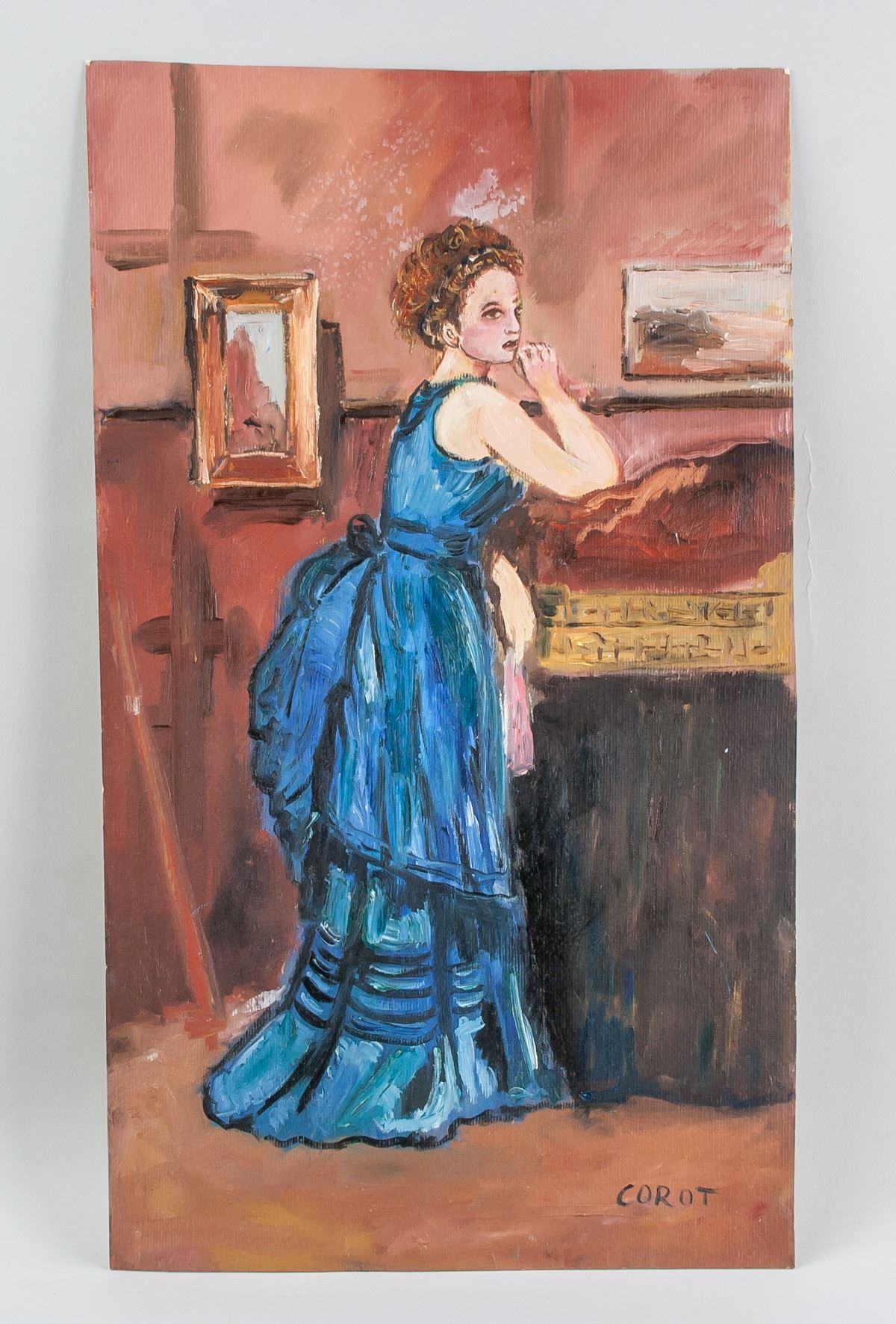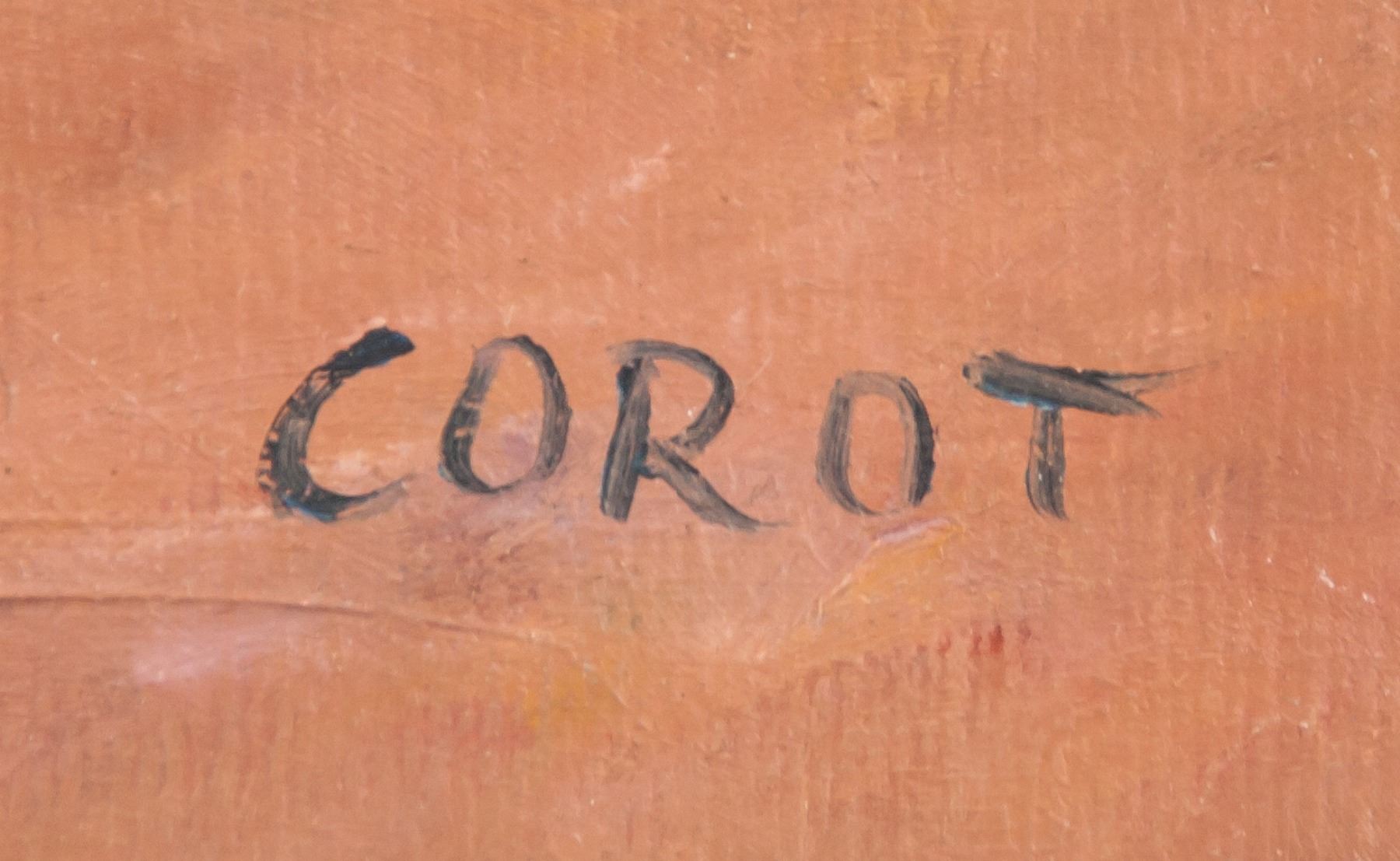Oil on paper. Featuring a portrait of a lady. Signed and attr. Jean-Baptiste-Camille Corot (French, 1796-1875) on the lower right corner. 47 x 28 cm (18.5 x 11.0 inches). A pivotal figure in landscape painting, Jean-Baptiste Camille Corot was an influential and prolific artist, producing over 3,000 works during his lifetime, and inspiring countless numbers of forgeries and copies. Although he was not especially interested or gifted in art at a young age, he decided to make the professional switch from businessman to artist at the age of 26, and in 1821, immediately began with the study of landscapes. He focused on two types of landscapes, historical landscapes, containing ancient and mythological creatures, and realistic landscapes, mostly of Northern Europe, with faithful renditions of flora and fauna, often mixing the two genres together. PROVENANCE: Private estate (Toronto, ON)