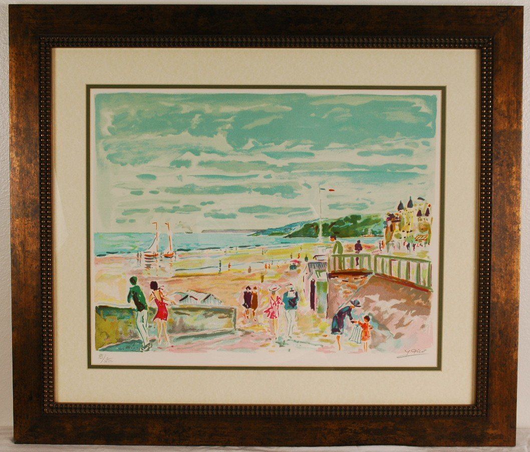 Jean?Claude Picot Original Lithograph Titled "La Plage-The Beach" Hand Signed By Picot And Pencil Numbered From An Edition Of 250. Framed Measures 30" X 26". Image Measures 20" X 15". Made On Thick Quality Paper. In Excellent Condition, Comes Framed, Includes Certificate Of Authenticity.