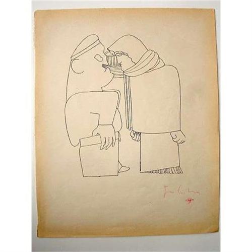 Hand signed by Jean Cocteau with a red pencil, lower right. Page out of the book of "DESSINS". Provenance: Galerie Les Tourettes, Paris. Edition: Librairie Stock, Delamain, Boutelleau & Cie, Paris. Certificate of Authenticity from our Gallery
