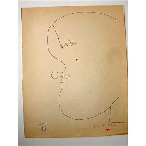 Hand signed by Jean Cocteau with a red pencil, lower right. Page out of the book of "DESSINS". Provenance: Galerie Les Tourettes, Paris. Edition: Librairie Stock, Delamain, Boutelleau & Cie, Paris. Certificate of Authenticity from our Gallery