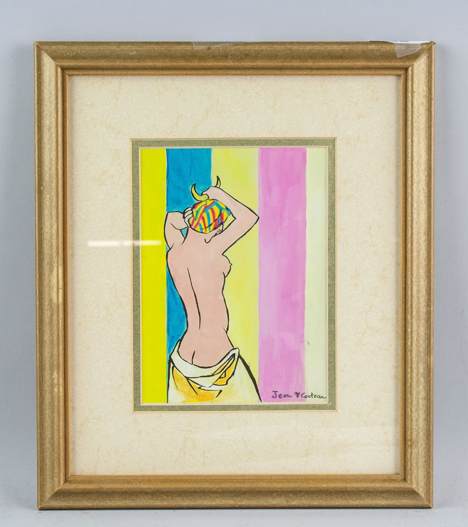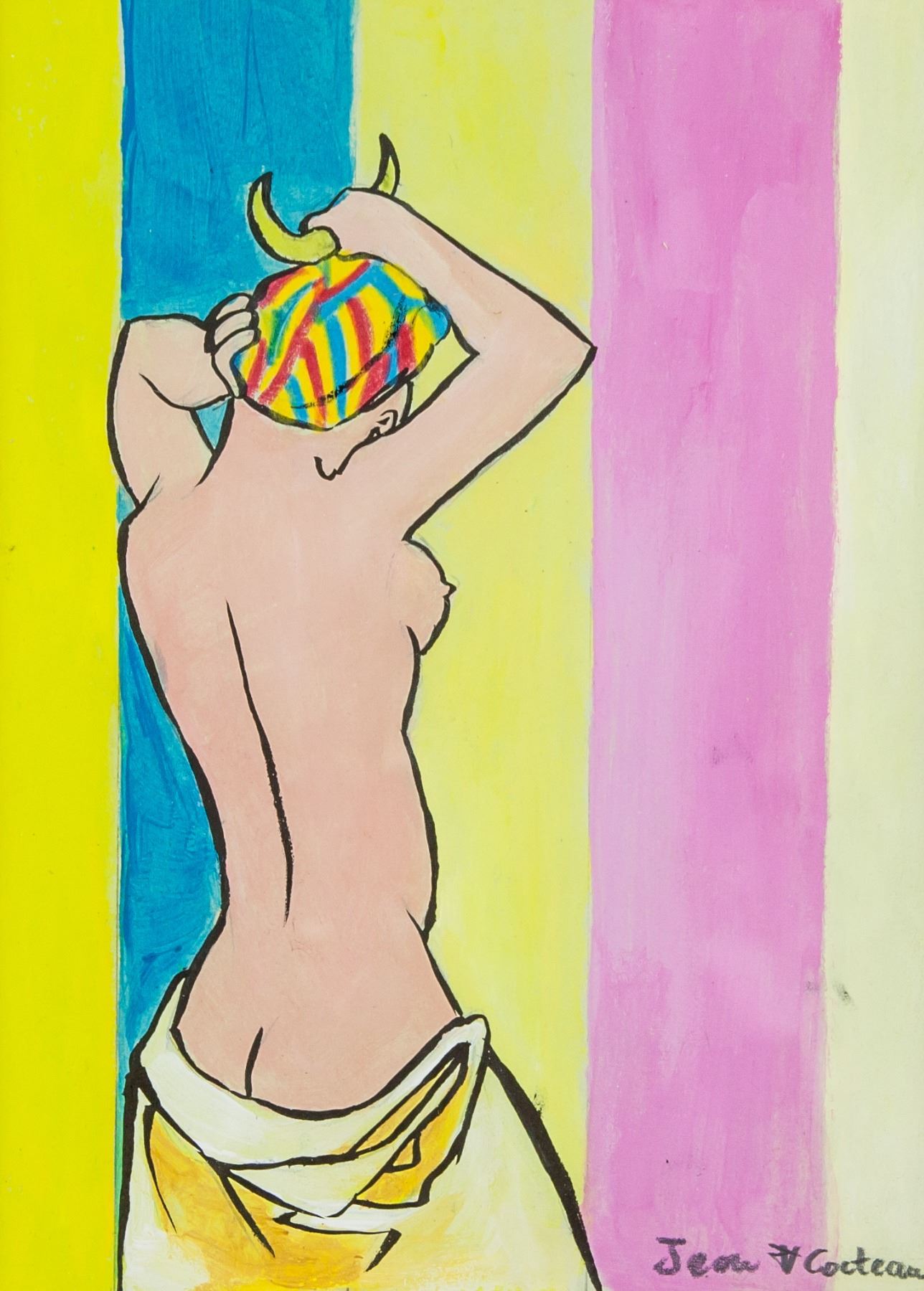 Oil on paper. Featuring a nude. Signed and attr. Jean Cocteau (French, 1889-1963). 7.5 x 5.5 in. (19 x 14 cm). Jean Cocteau was an enormously influential French artist and writer known as one of the major figures of Dada and Surrealism. With an oeuvre that spanned painting, novels, poetry, plays, and films, Cocteau established himself as a leading creative force in Paris. A regular member of the avant-garde, he maintained long-term friendships with artists such as Pablo Picasso, Tristan Tzara, Francis Picabia, and Man Ray. “The job of the poet (a job which can't be learned) consists of placing those objects of the visible world which have become invisible due to the glue of habit, in an unusual position which strikes the soul and gives them a tragic force,” he once mused. Born on July 5, 1889 in Maisons-Laffitte, France, the self-taught Cocteau would regularly draw his friends and acquaintances in a distinctive, fluid style informed by his interests in Cubism, psychoanalysis, and Catholicism. “Poets don't draw,” he once quipped about his artworks. “They unravel their handwriting and then tie it up again, but differently.” Among his best-known works is the novel Les Enfants Terribles (1929) and his critically acclaimed films le Sang d’un poete (Blood of a Poet) (1930), La Belle et la Bête (Beauty and the Beast) (1946), and Orphee (Orpheus) (1949). Cocteau died on October 11, 1963 at the age of 74 in Milly-la-Foret, France. Today, his works are included in the collections of The Museum of Modern Art in New York, the National Gallery of Art in Washington, D.C., and the Courtauld Institute of Art in London, among others. PROVENANCE: Southern Ontario Estate