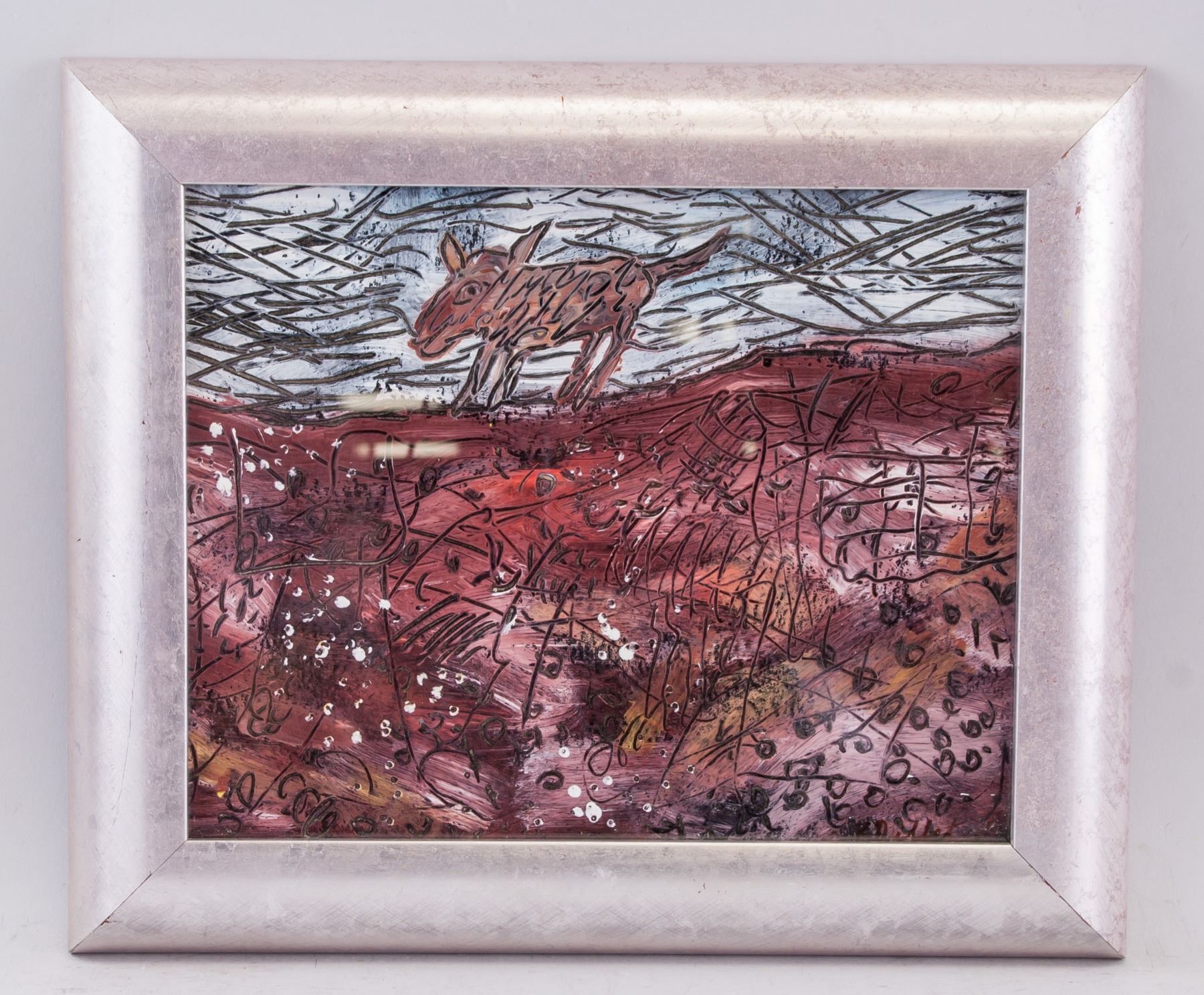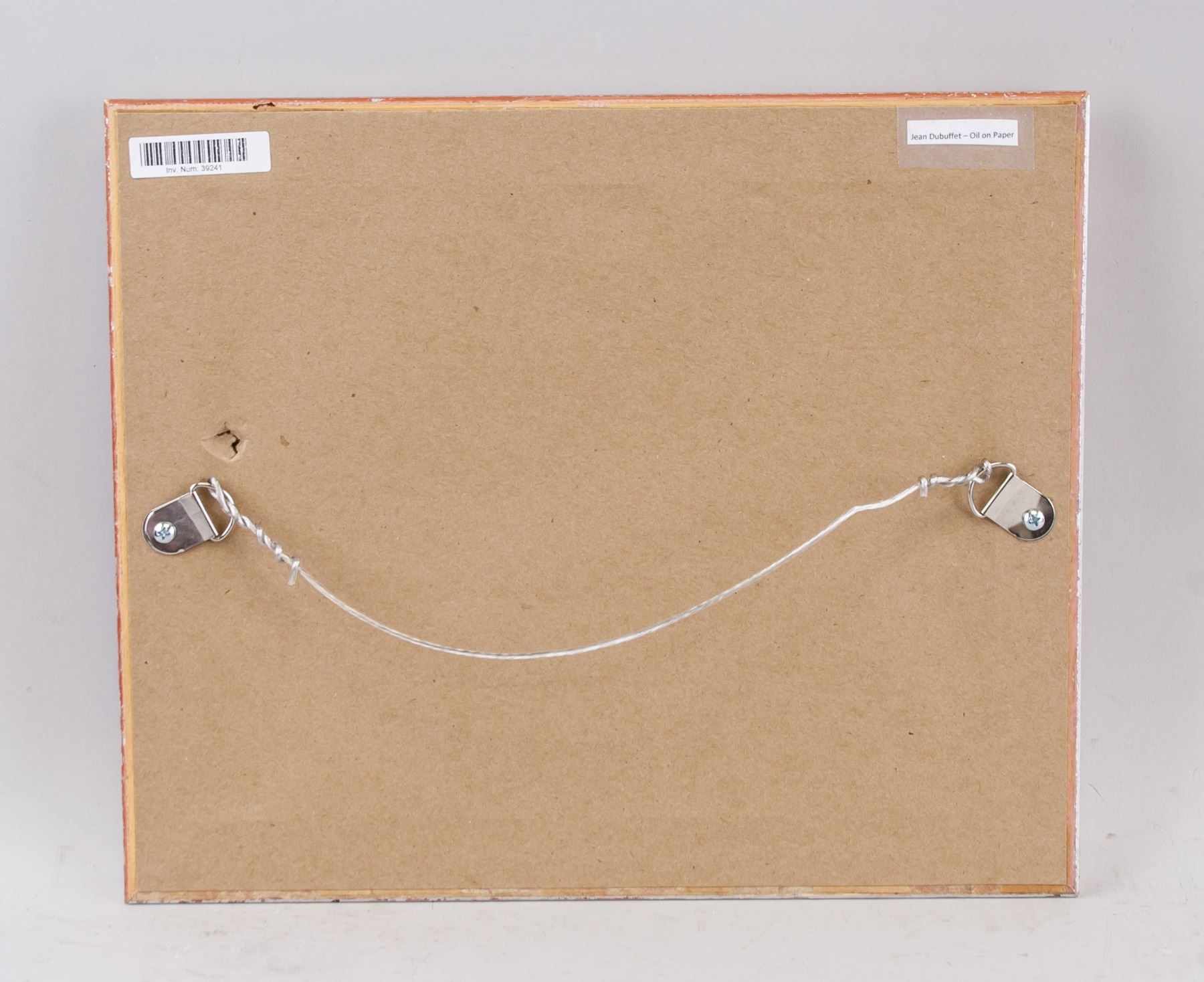 Oil on paper. Featuring an animal. Signed and attr. Jean Dubuffet (French, 1901-1985) on the lower right corner. 19 x 24 cm (7.5 x 9.4 in). Jean Dubuffet was an integral French artist known for his primal paintings and sculptures of vernacular subjects. His adoption of the term Art Brut or raw art, referred to the art of children, prisoners, and the mentally ill, was a reaction to what he called art culturel or refined art. It was his desire to break from tradition by implementing rudimentary mark making and emulsions made from sand, tar, and trash, as seen in his work Grand Maitre of the Outsider (1946). “A work of art is only of interest, in my opinion, when it is an immediate and direct projection of what is happening in the depth of a person's being,” the artist said. “It is my belief that only in this Art Brut can we find the natural and normal processes of artistic creation in their pure and elementary state.” Born on July 31, 1901 in Le Havre, France, he went on to study Académie Julian in Paris. While at school his peers included Raoul Dufy, Suzanne Valadon, and Fernand Léger. In 1918, after attending classes for only six months he dropped out. Taking over his father’s wine business in 1924, he didn’t return to making art until the early 1940s. The artist would go on to form the Compagnie de l’Art Brut with André Breton and Slavko Kopac. The artist died on May 12, 1985 in Paris, France at the age of 83. Today, his works are held in the collections of the Art Institute of Chicago, The Museum of Modern Art in New York, the National Gallery of Art in Washington, D.C., and the Centre Georges Pompidou in Paris. PROVENANCE: Southern Ontario estate