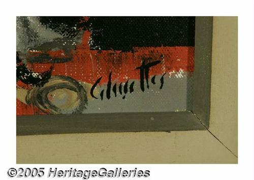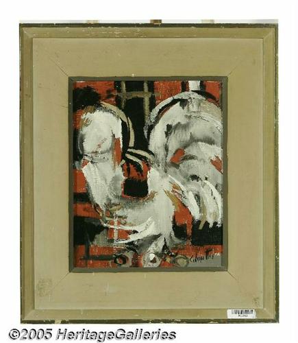 <B>JEAN-MARIE CALMETTES (French b.1918)</B></I><BR>Red and Grey Cock<BR>Oil on canvas<BR>Signed lower left<BR>10.5in. x 8.5in.<BR><BR>Condition Report: Some surface dirt, otherwise very good condition<BR>