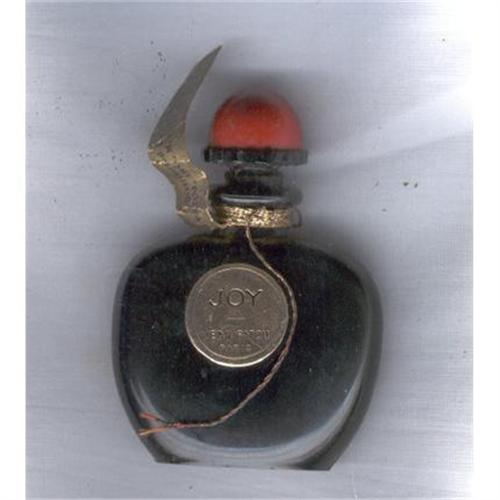 Delightful JOY perfume bottle with red stopper -that is not cracked or broken. Still has the tag showing distributed by Jean Patou NY. Raised lettering on bottom of bottle reads: JEAN PATOU BOTTLE MADE IN FRANCE. A Must have for every collector!