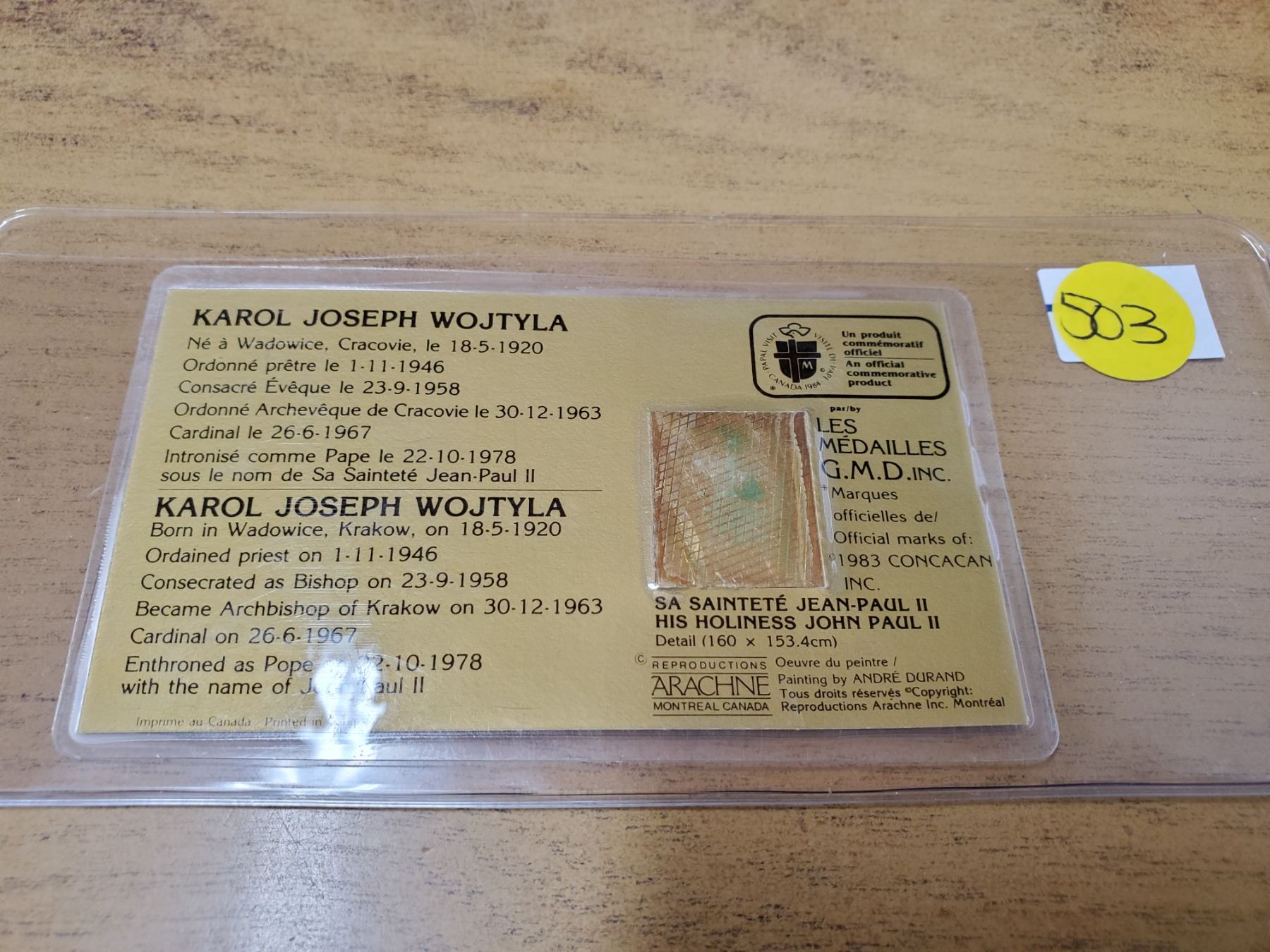 JEAN PAUL II SOUVENIR CARD