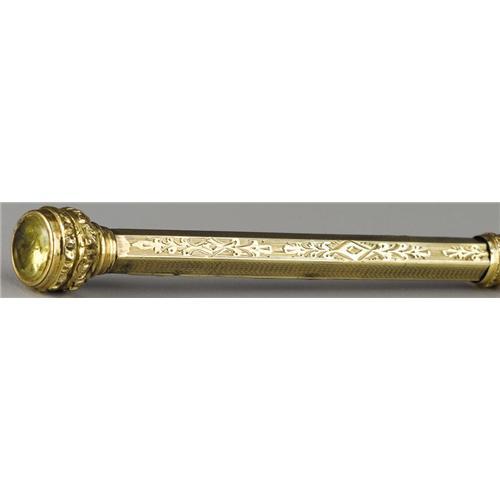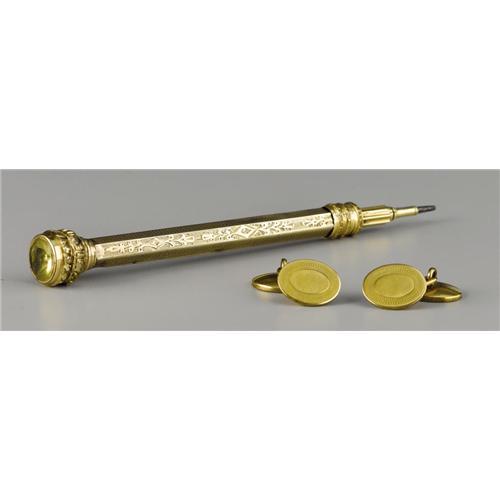 <B>JEB Stuart's Highly Engraved Gold Mechanical Pencil and His Gold Cuff Links.</B></I> The pencil is believed to have been carried by him in the field and used to sign military orders. The gold cuff links would have been used on his dress shirt in conjunction with his Confederate uniform, complimenting his attire as the foremost cavalry officer of the Confederate army. <BR><BR><I>Provenance</B></I>: Stuart Family correspondence and Bill of Sale.<BR><BR><b>Shipping:</b> Small Collectibles (<a target="_blank" href="http://www.heritageauctions.com/common/shipping.php">view shipping information</a>)