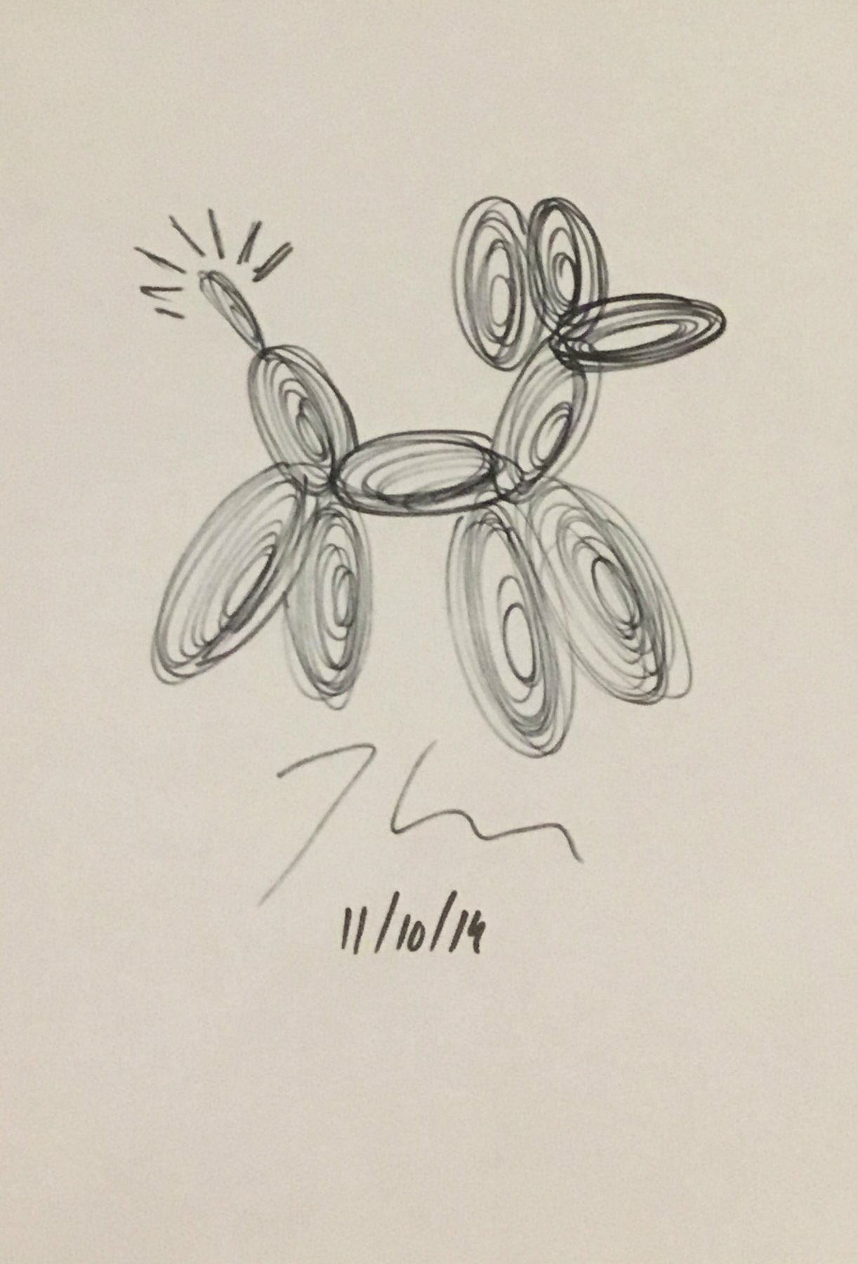 A Poodle dog drawing on A4 paper by Jeff Koons, signed and dated, supplied with coa.