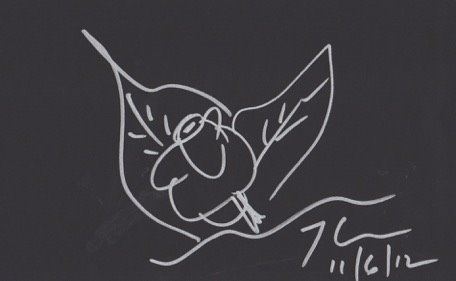 JEFF KOONS: Drawing of a silver flower. 8x5 inches.
