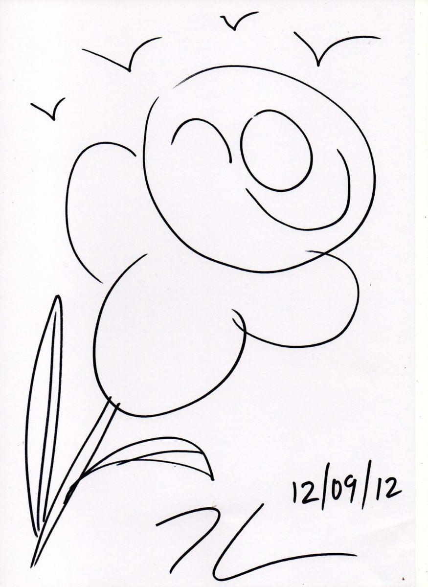 A drawing of a flower by Jeff Koons. 12x8 Inches.