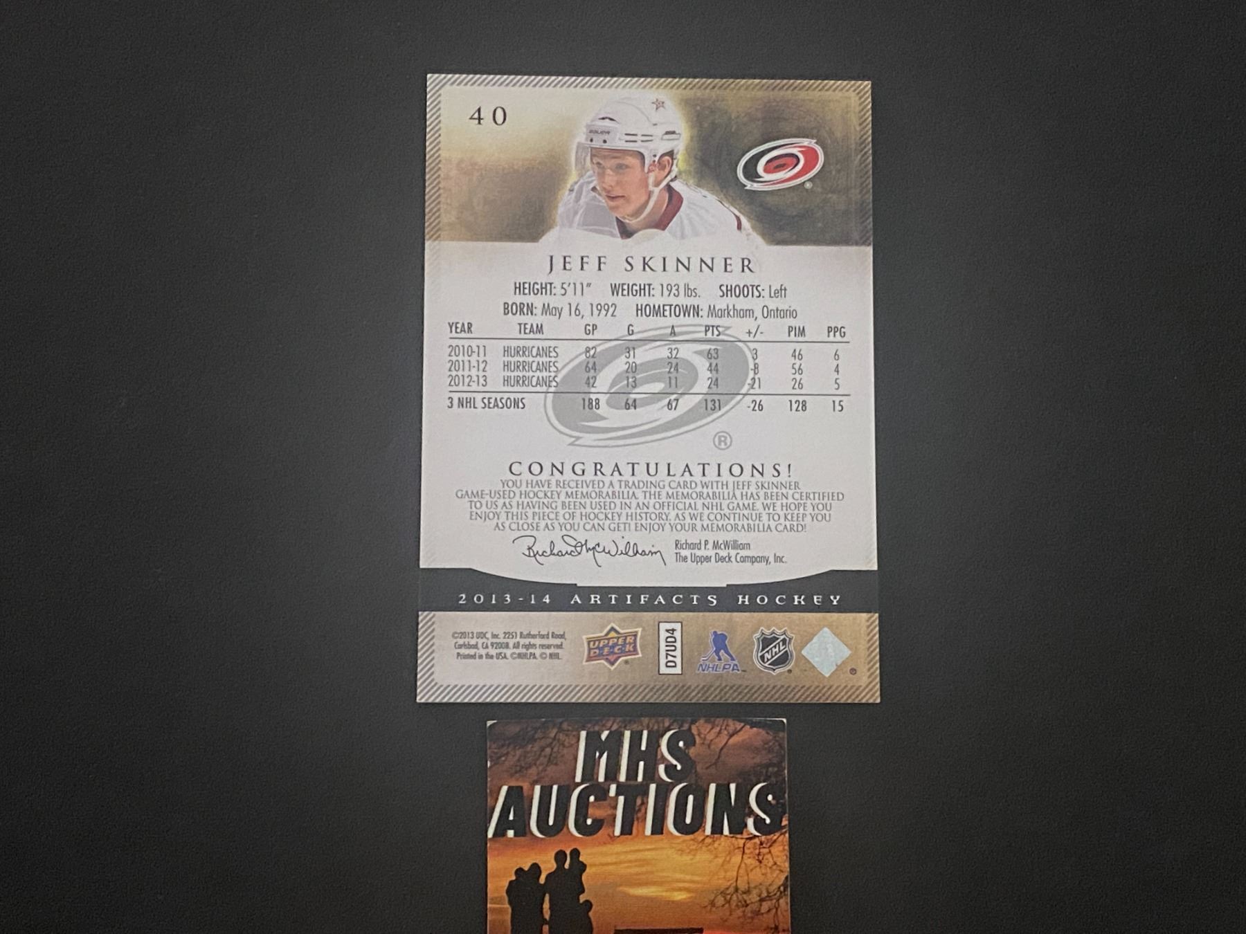 JEFF SKINNER 2013-14 ARTIFACTS PATCH HOCKEY CARD