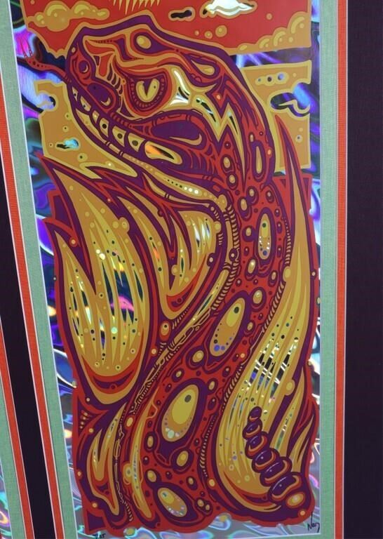Jeff Wood signed 311 The Tabernacle Atlanta Limited Edition Lava foil limited edition concert posters to include one bird poster 27/35, and one snake poster 4/35. Both posters are signed. These posters are extremely rare and highly collectible.