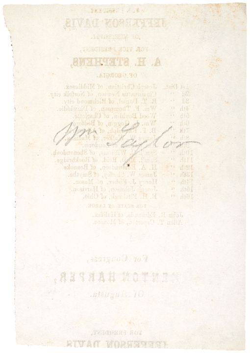 Original Jefferson Davis & Alexander Stephens Confederate Electoral Ticket from Virginia
